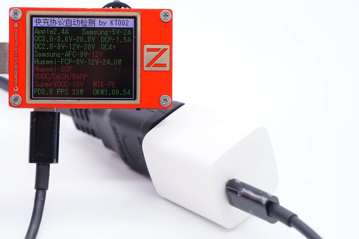 使用ChargerLAB POWER-Z KT002測得USB-C口支持Apple 2.4A、Samsung 5V2A、DCP協(xié)議,以及QC2.0/3.0、AFC、FCP、PD3.0和PPS快充協(xié)議。