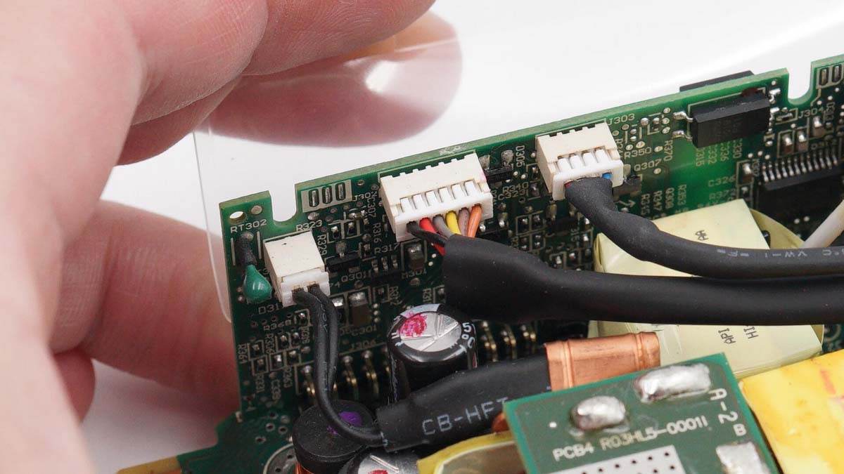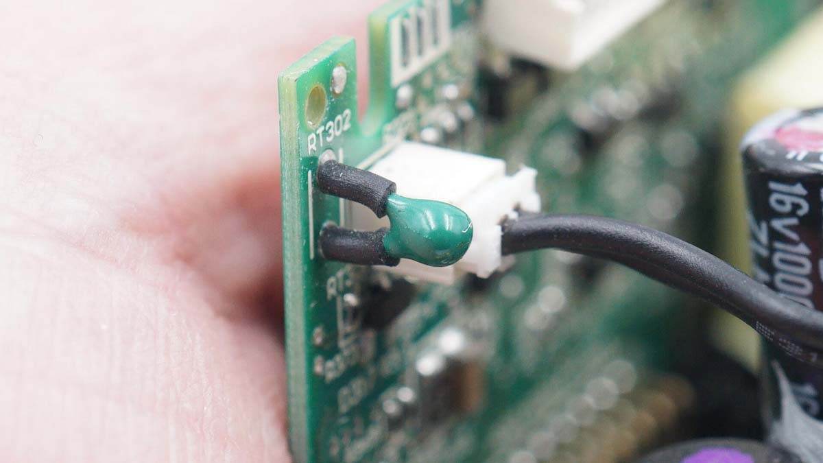 背面有一個塑料支架固定的熱敏電阻,用于檢測電源溫度。