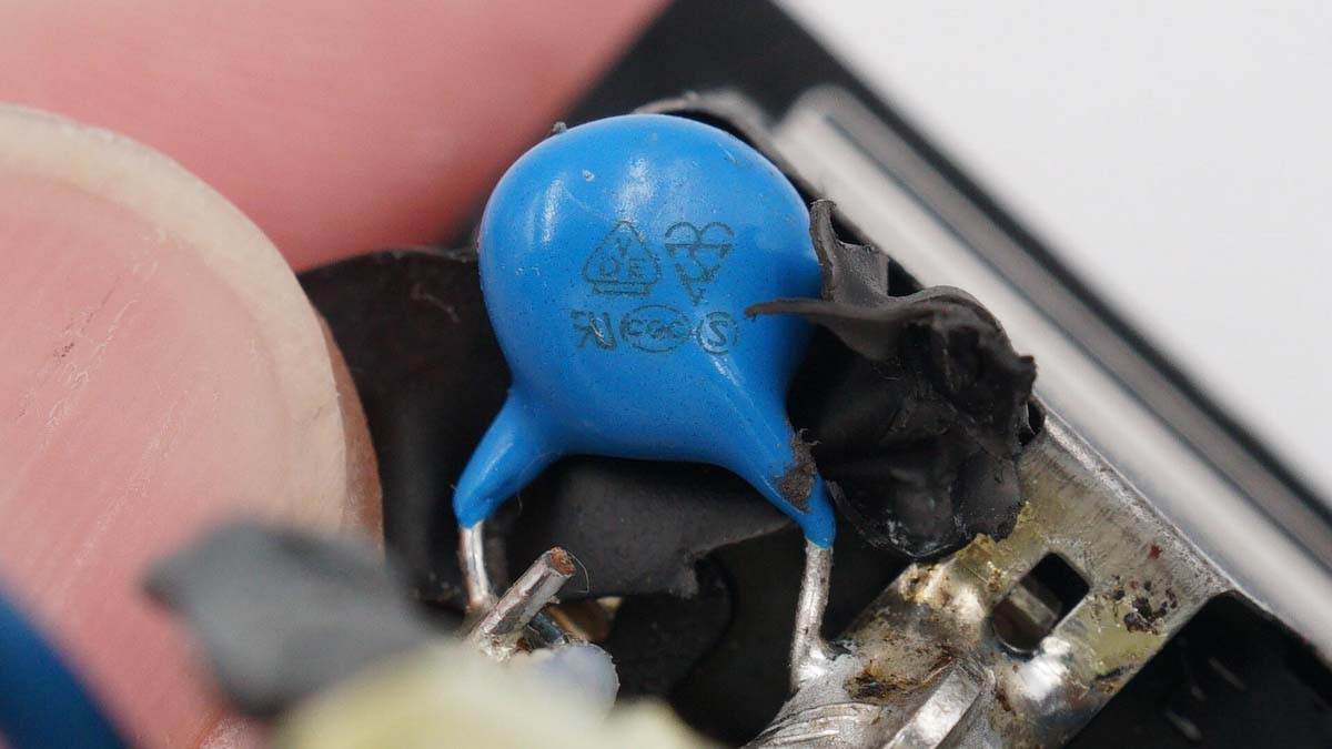 旁邊壓敏電阻也是采用絕緣管保護,安規X電容容量1μF。
