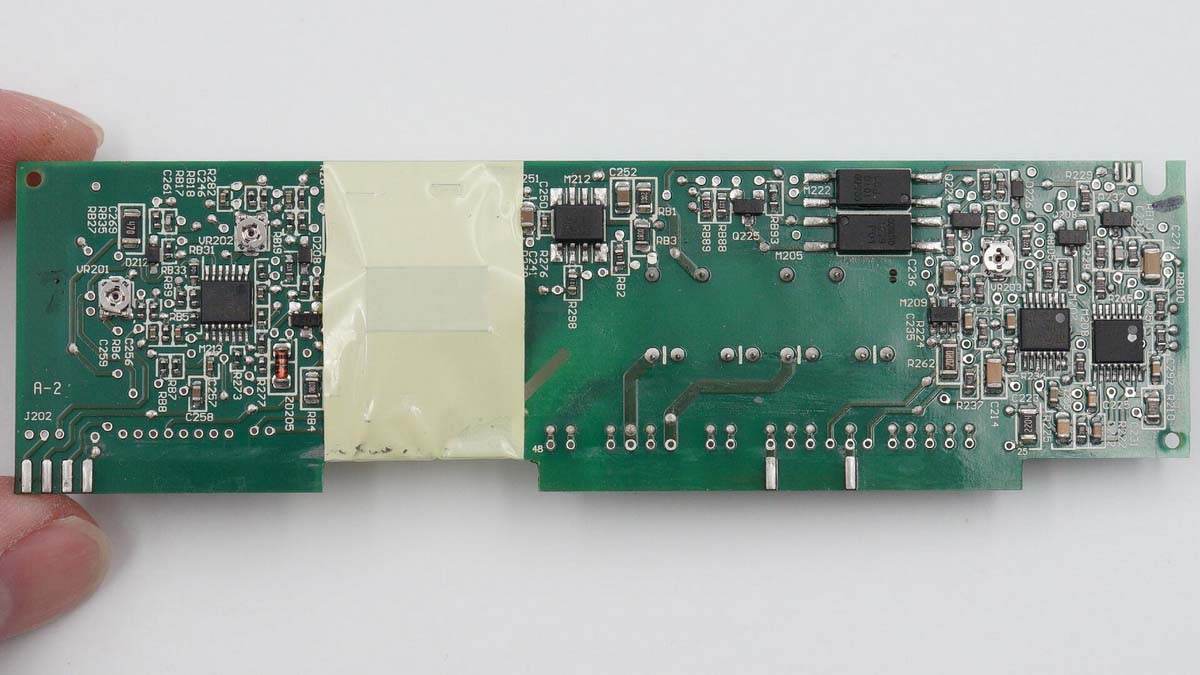 小板另一面一覽,膠帶下明顯有一顆芯片。