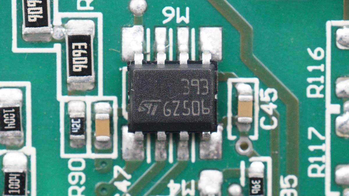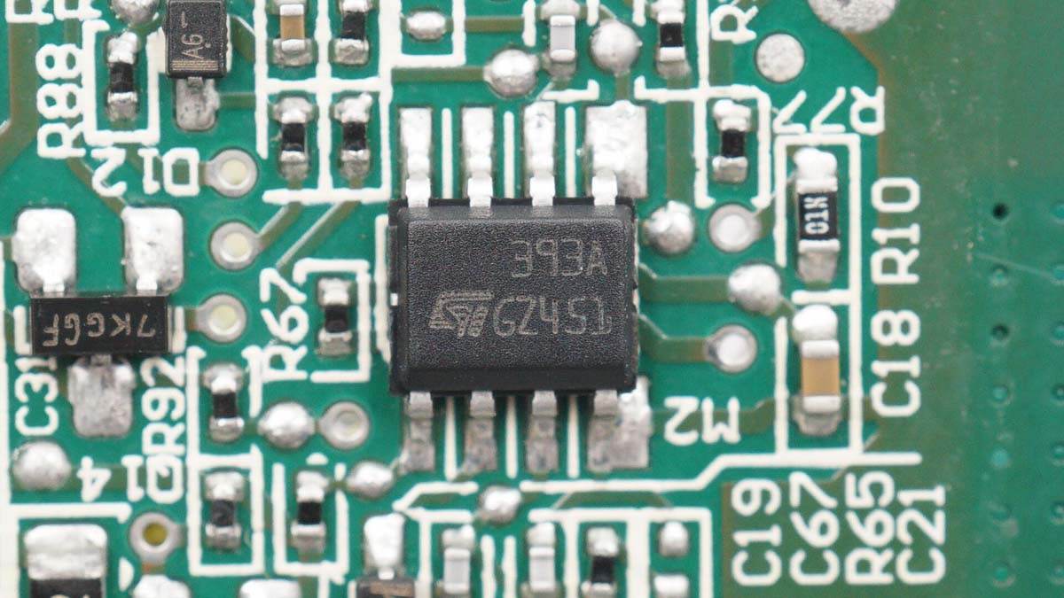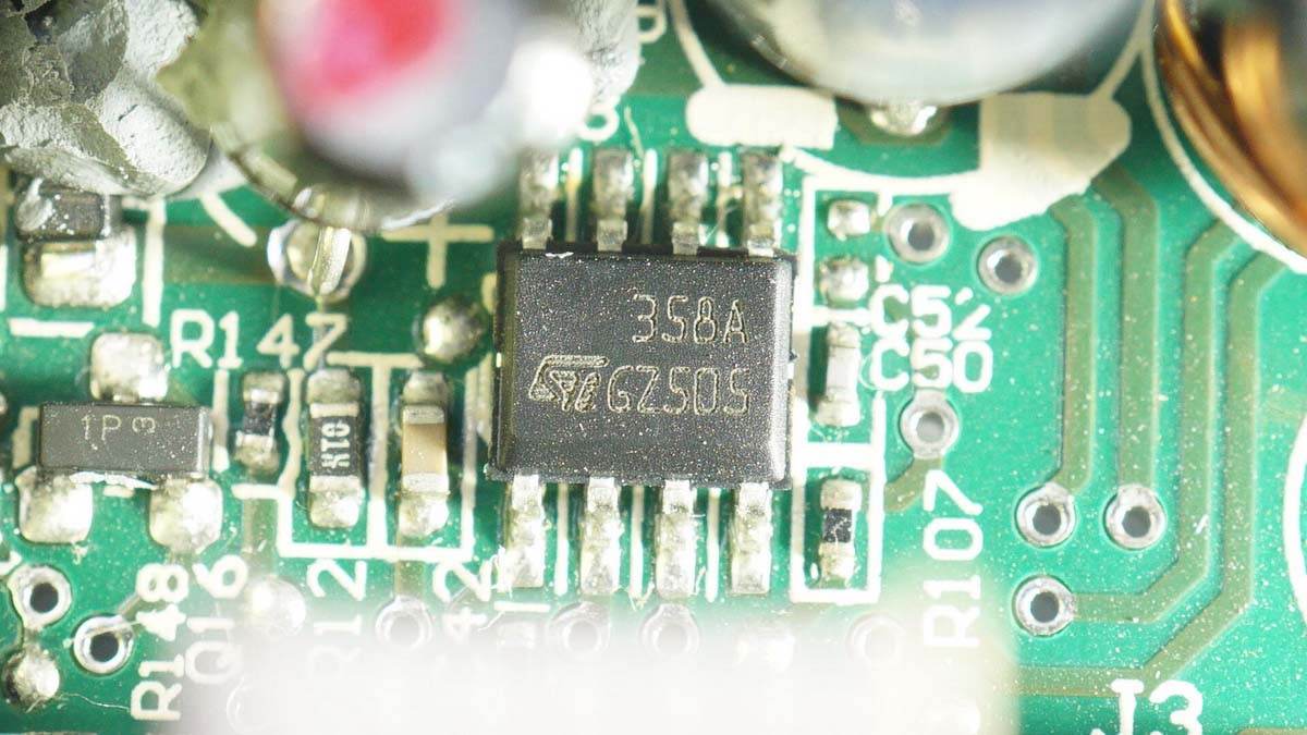 主板背面初級側還有一顆意法的芯片,LM393雙路電壓比較器。