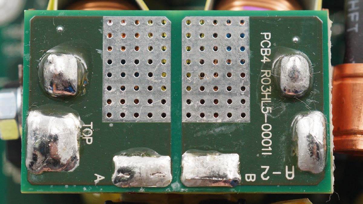 變壓器次級輸出焊接到這塊小板上,板子背面漏銅加錫以及過孔處理,增強散熱。