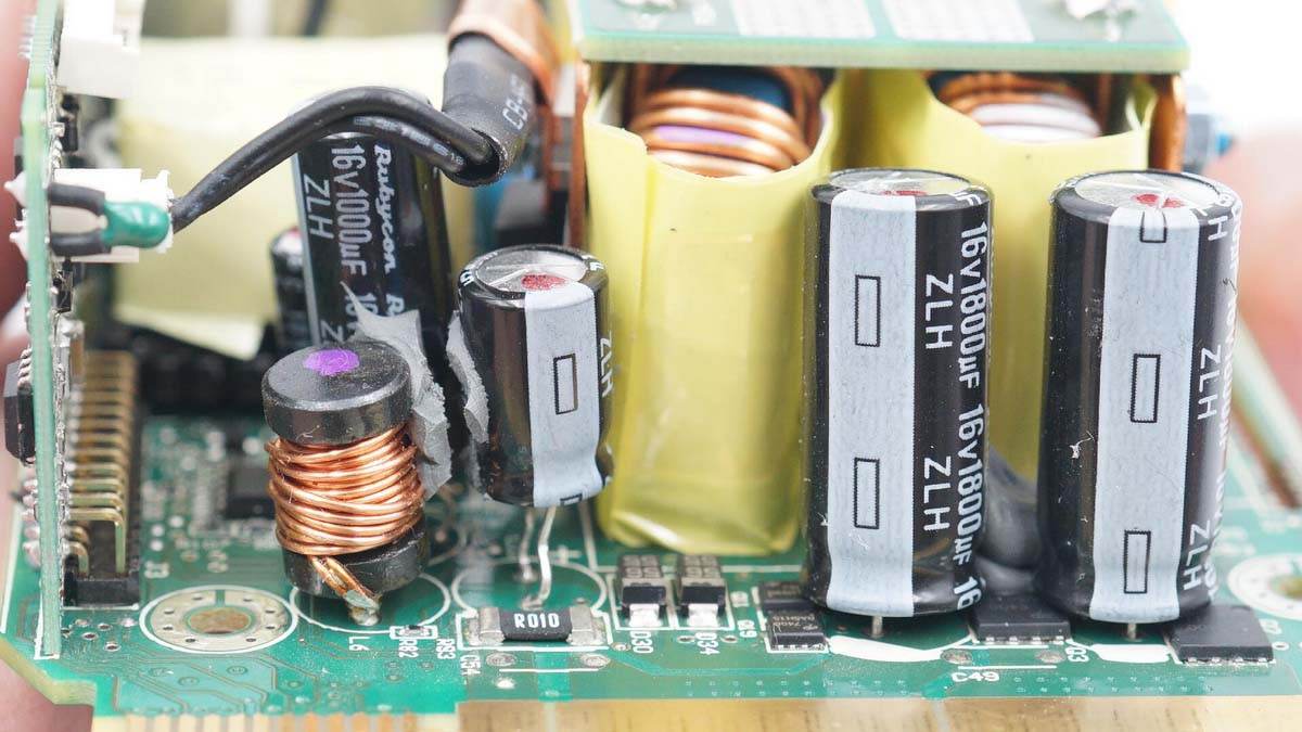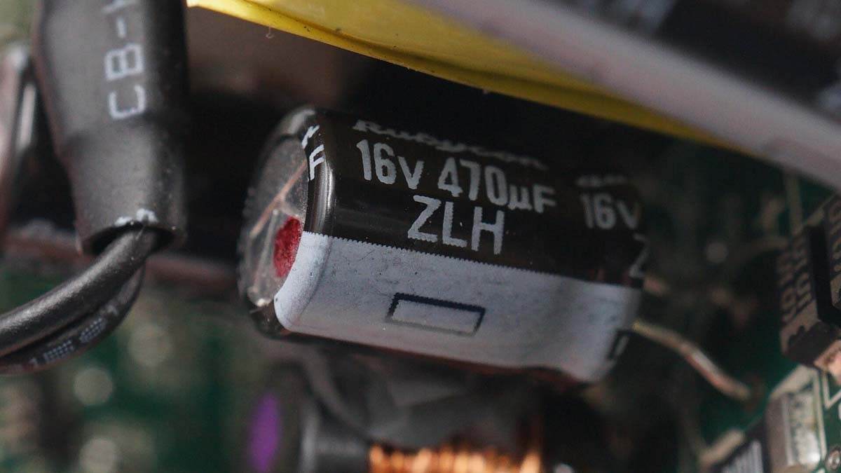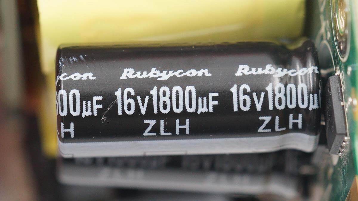 兩顆大電容來自紅寶石,規格均為16V 1800μF,ZLH長壽命系列。
