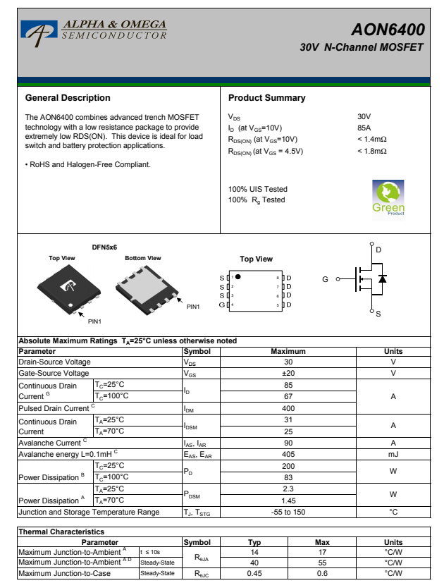 電容下是一顆AOS AON6400,耐壓30V,用于輸出控制。