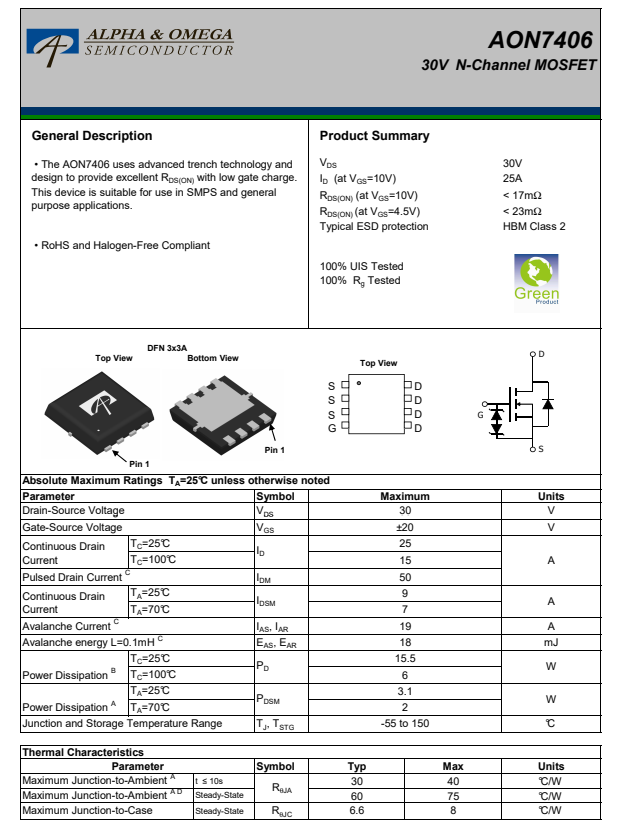旁邊還有兩顆AON7406,耐壓30V,DFN3x3封裝。