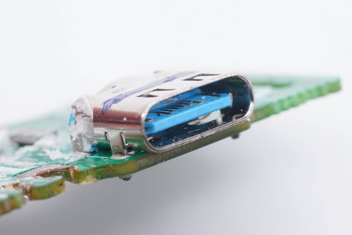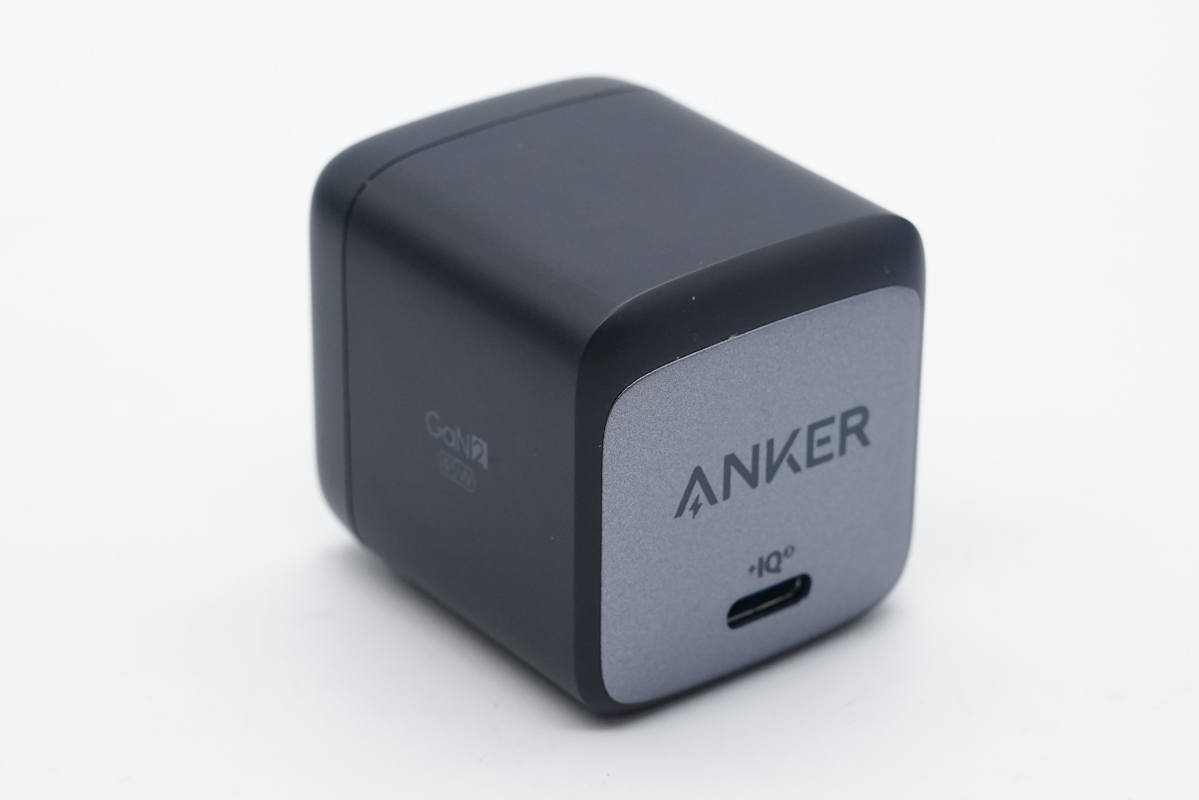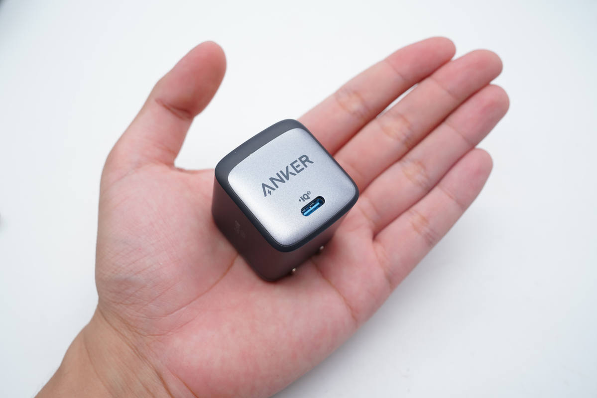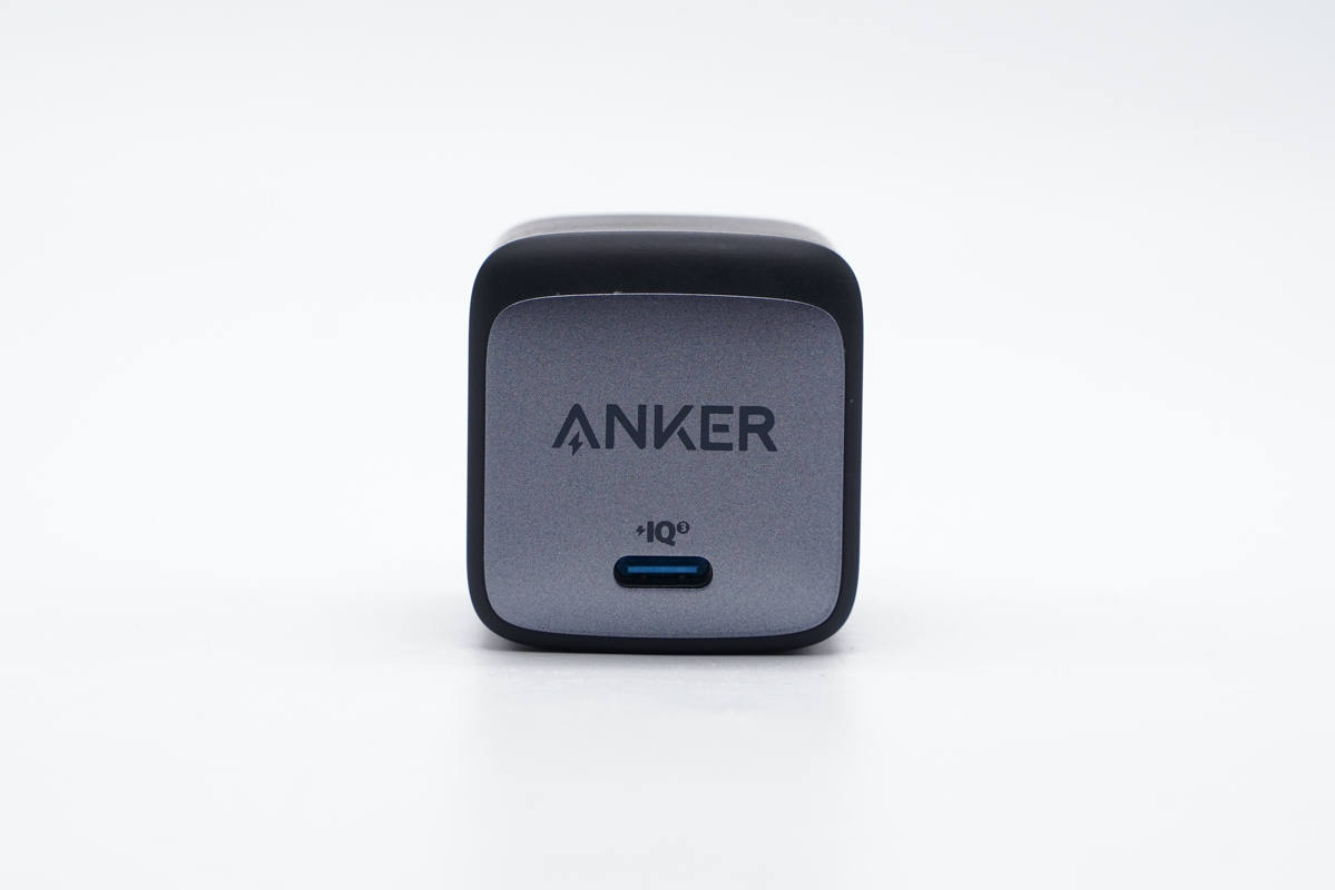 頂面貼有銀灰色裝飾板,中心印有ANKER品牌,USB-C口藍色膠芯不露銅。