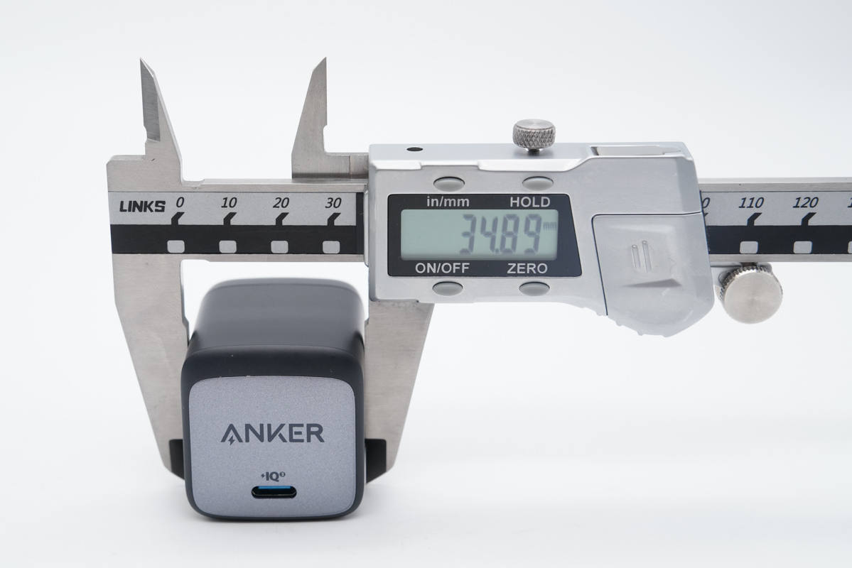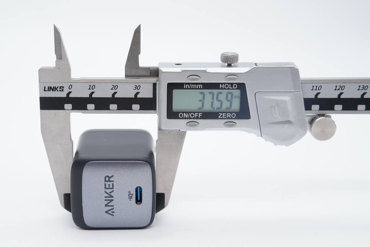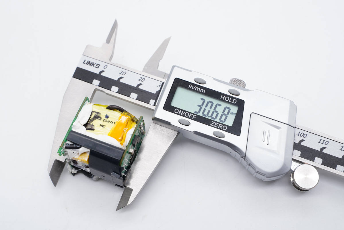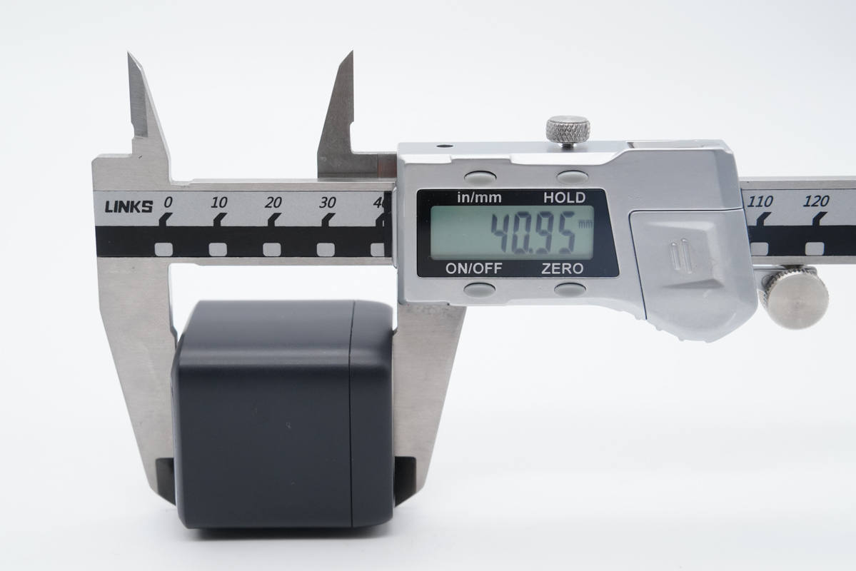 使用游標卡尺實測充電器機身長度為40.95mm。