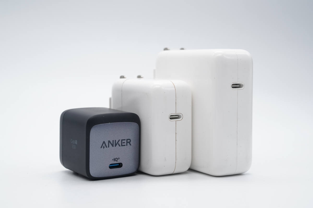 和蘋果30W以及61W充電器直觀對比,體積優勢非常明顯。