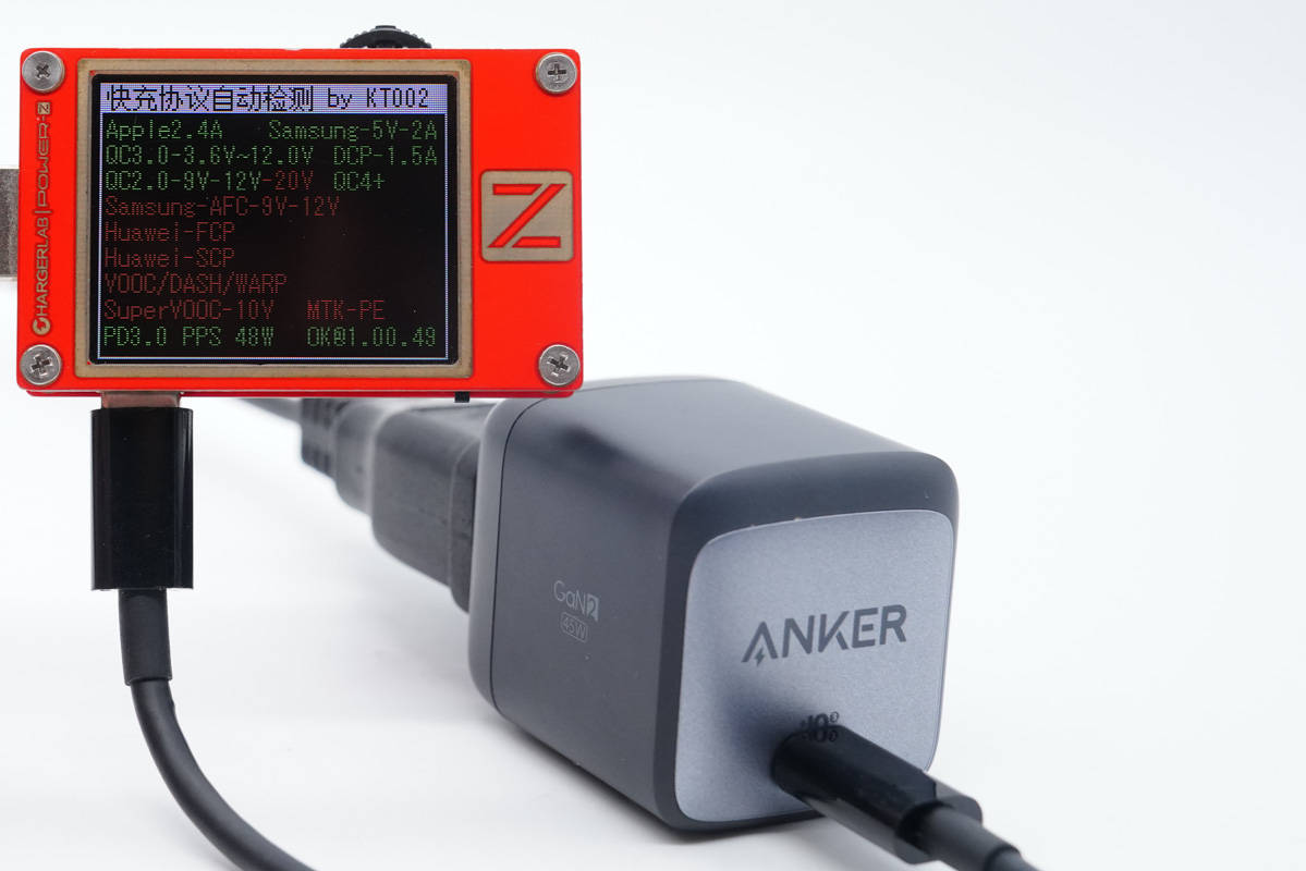使用ChargerLAB POWER-Z KT002測得USB-C口支持Apple 2.4A、Samsung 5V2A、DCP協議,以及QC2.0/3.0、PD3.0、PPS快充協議。