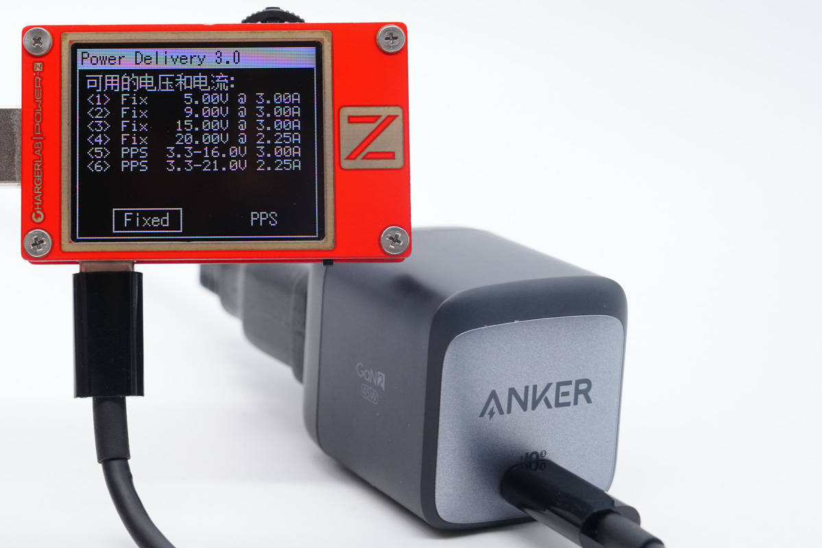 此外還測得C口具備5V3A、9V3A、15V3A、20V2.25A四組固定電壓檔位,以及3.3-16V3A和3.3-21V2.25A兩組PPS電壓檔位。