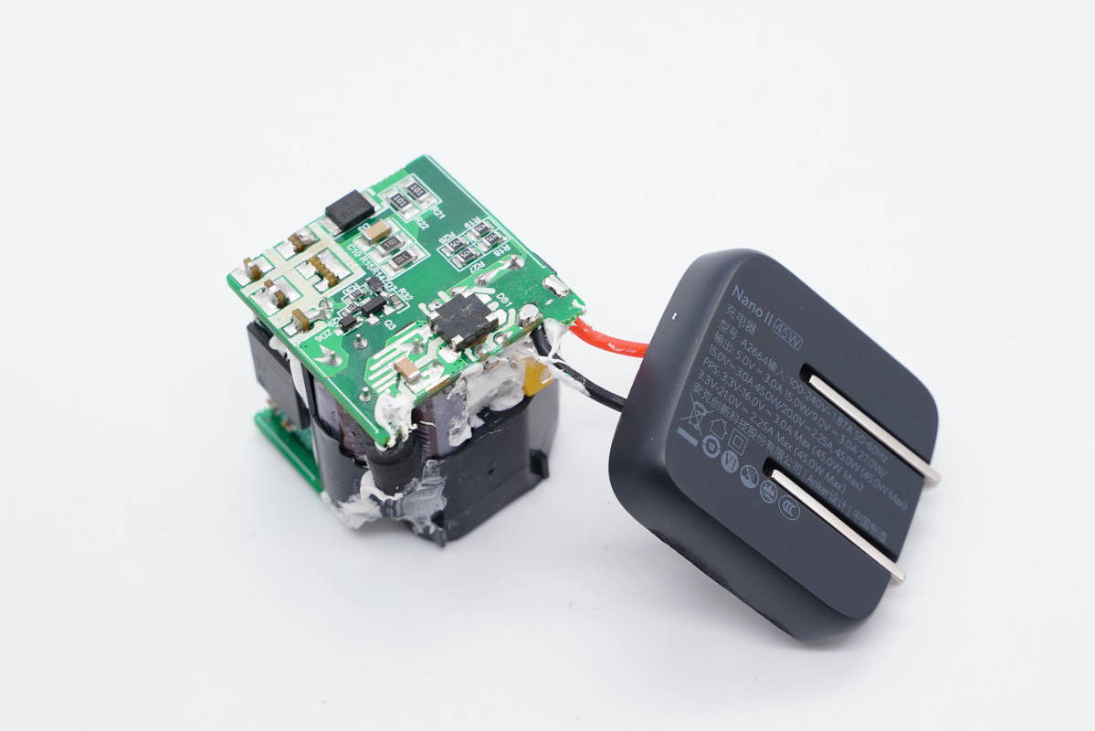 不過該系列充電器也有國行和美版之分,而且充電頭網了解到,例如45W這款充電器的兩個版本在用料上就有所不同。那么索性將安克45W氮化鎵超能充美規版本也拆了,看看具體有何差別?