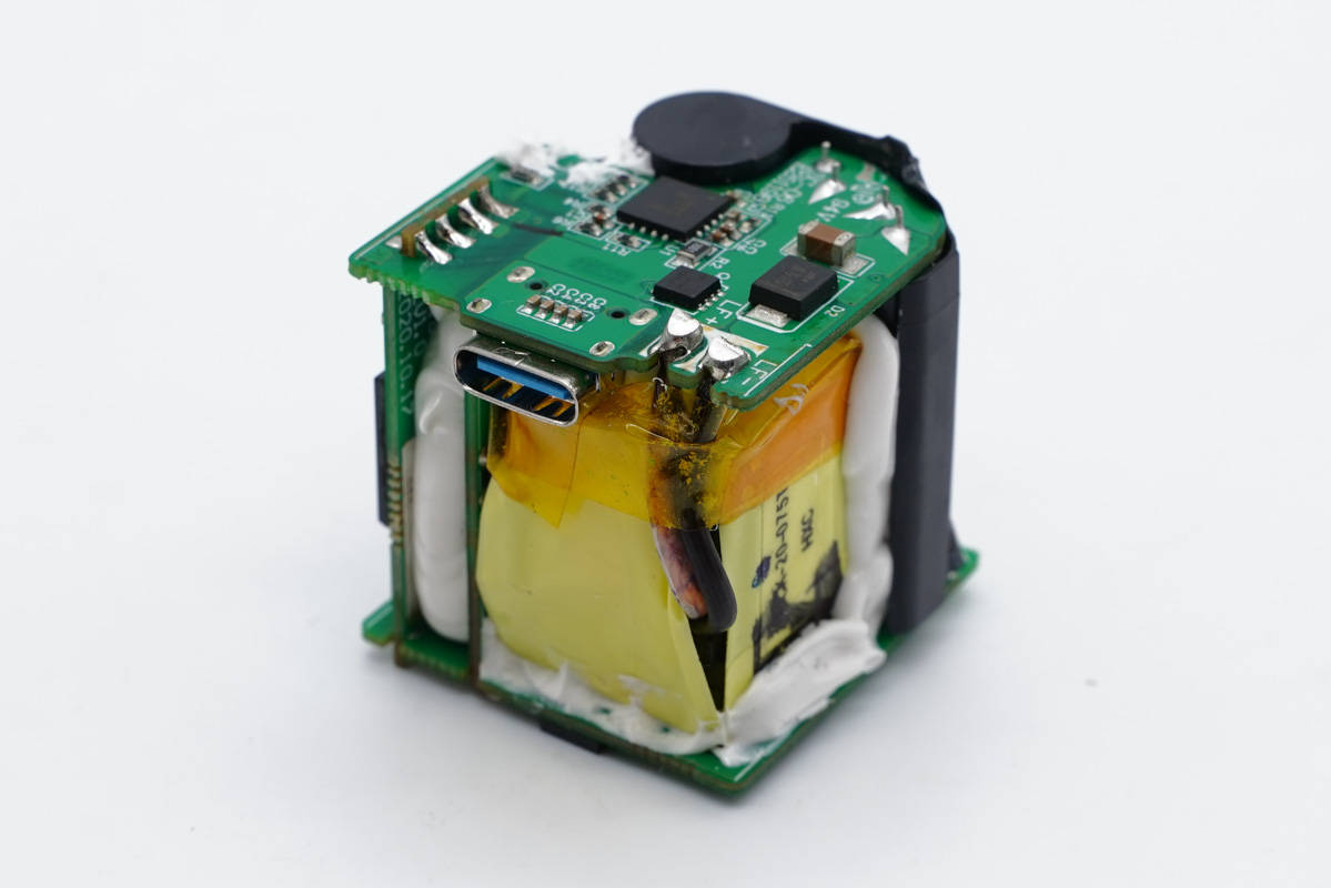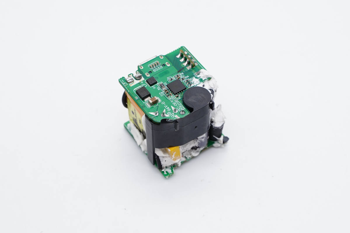 進一步拆解了解到,美版采用了PI INN3379C方案,協議芯片采用偉詮WT6636F,這些都和國行版的相同。不同的是其采用了永銘KCX和NPX系列小體積快充電容進行輸入輸出濾波,不過國行版也有采用永銘的NPX系列固態電容濾波,足見安克對永銘產品的認可。永銘電容對安克45W超能充實現小型化的幫助是非常大的。·