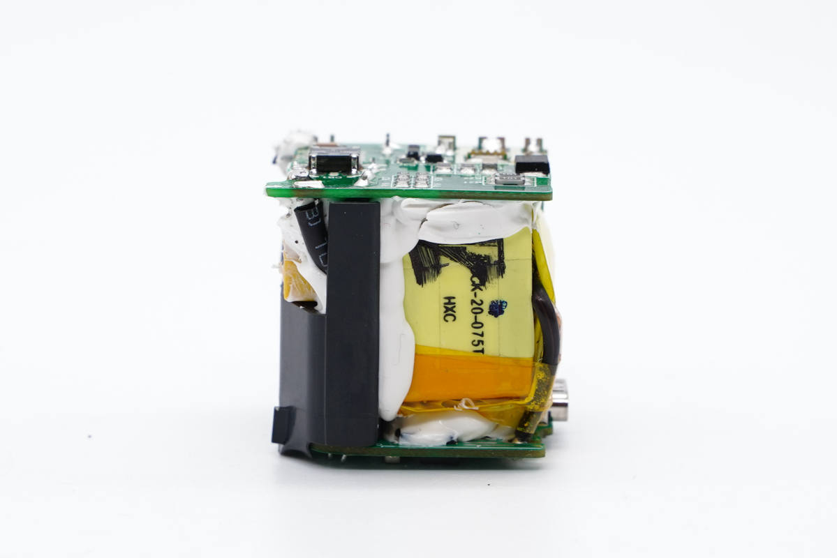 PCBA模塊采用四塊小板組合焊接設計,側面有兩塊,變壓器包裹絕緣膠帶并打膠加固。
