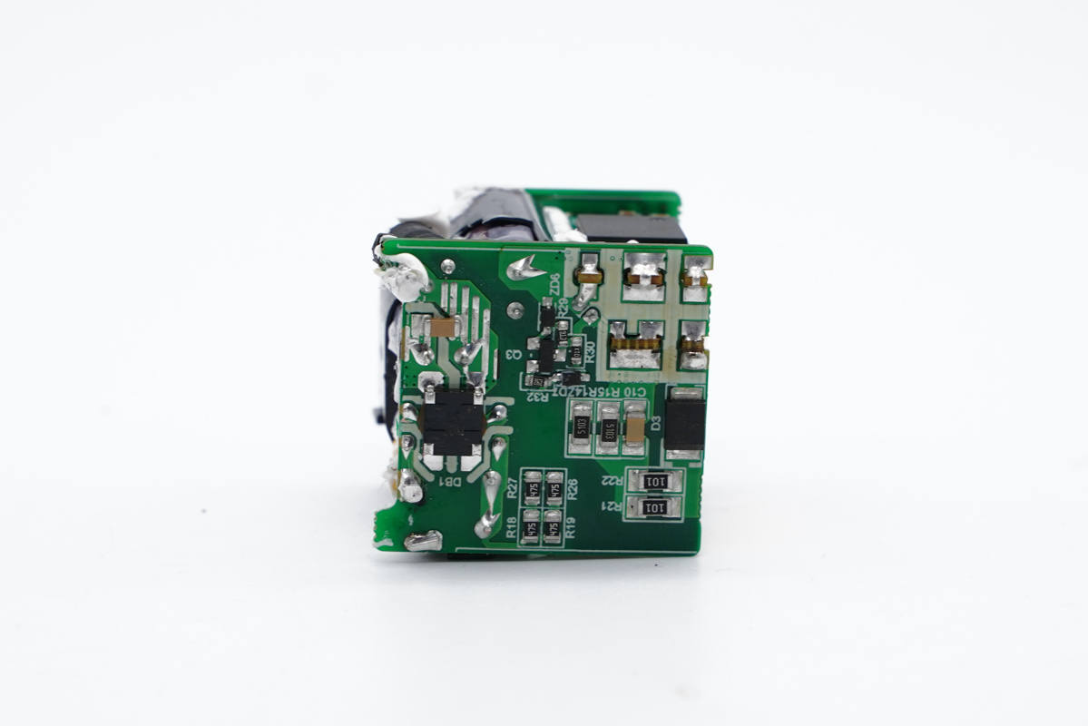 開關電源主控芯片采用PI INN3379C,采用PowiGaN技術,內置PWM控制器、高壓MOS、同步整流控制器等,集成度非常高,并且采用數字總線控制調壓。寬電壓范圍條件下,密閉外殼內可以輸出65W功率。