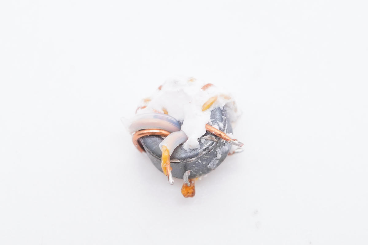 共模電感用于濾除EMI干擾,雙線繞制,其中一根套有絕緣管。