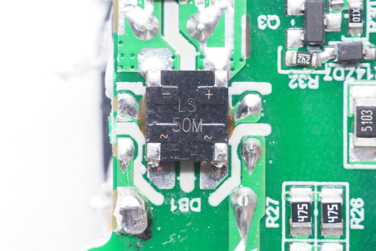 LS50M整流橋特寫,貼片封裝降低厚度。