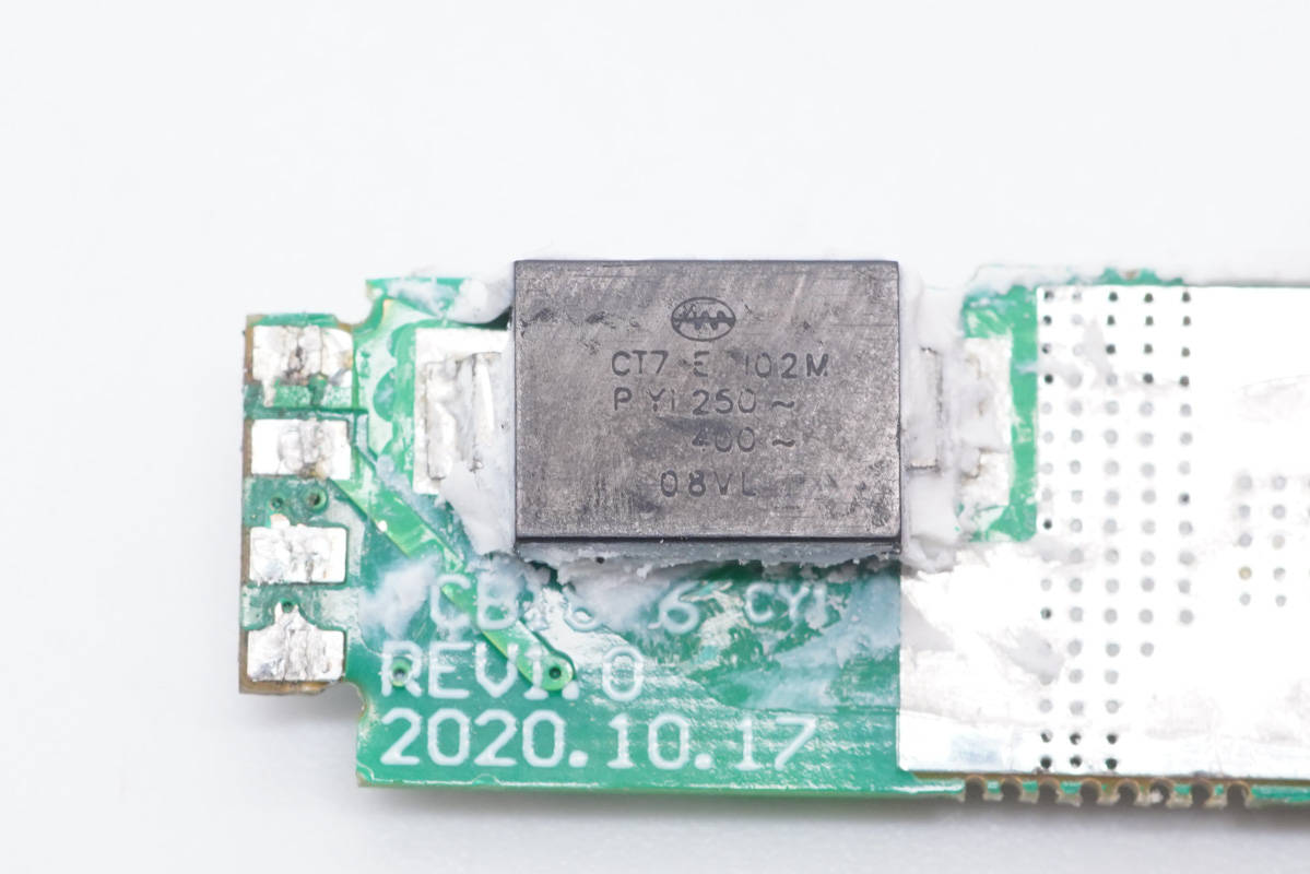 另一面設有一顆Y電容,對應主控芯片處露銅加錫幫助散熱。