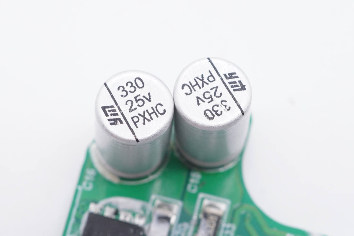 兩顆輸出濾波固態電容采用永銘NPX系列,規格均為25V 330μF 5×15。該系列電容具有小體積、低ESR、高額定紋波電流、高可靠性、耐開關沖擊等特點。