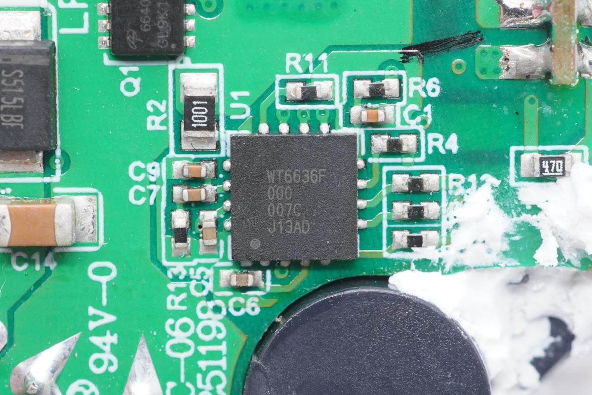 USB PD協議IC采用偉詮WT6636F,這是一顆通過USB-IF協會USB PD3.0(PPS)認證的協議芯片(TID號:1080018),另外通過了高通QC4+認證,認證號QC20200316138。