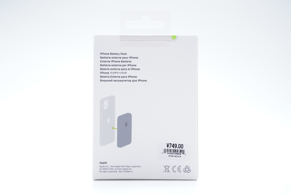 背面展示出了產品的使用方式,直接吸附在iPhone 12系列機型的背面即可。是的,沒錯,這款蘋果官方MagSafe磁吸無線充電寶的售價為749元人民幣。