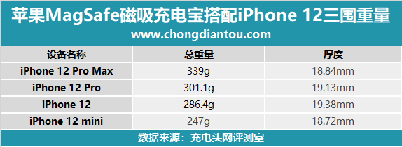 這是MagSafe磁吸無線充電寶搭配4部iPhone 12使用時的總重量和厚度。