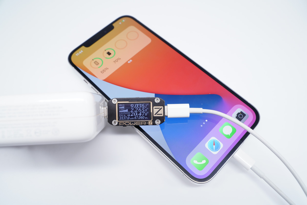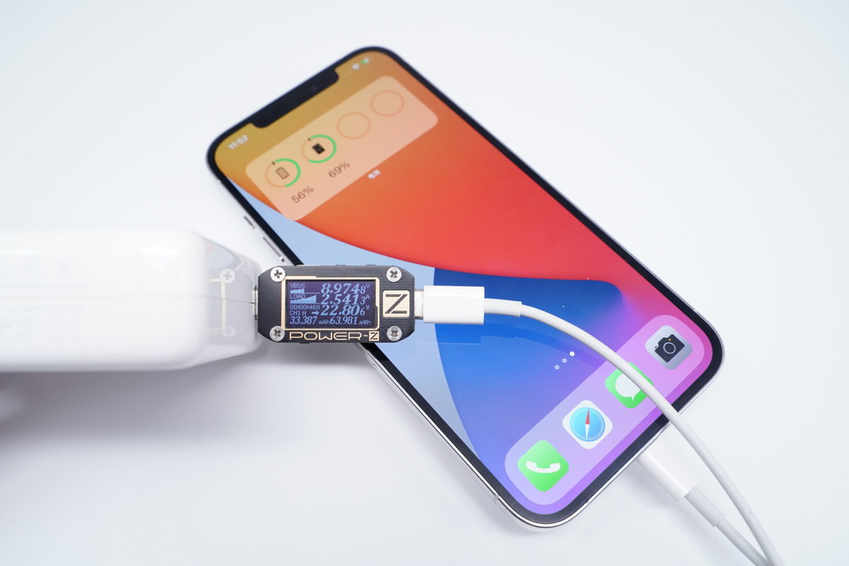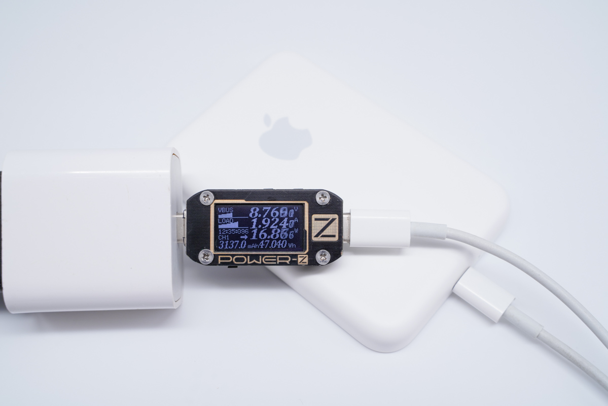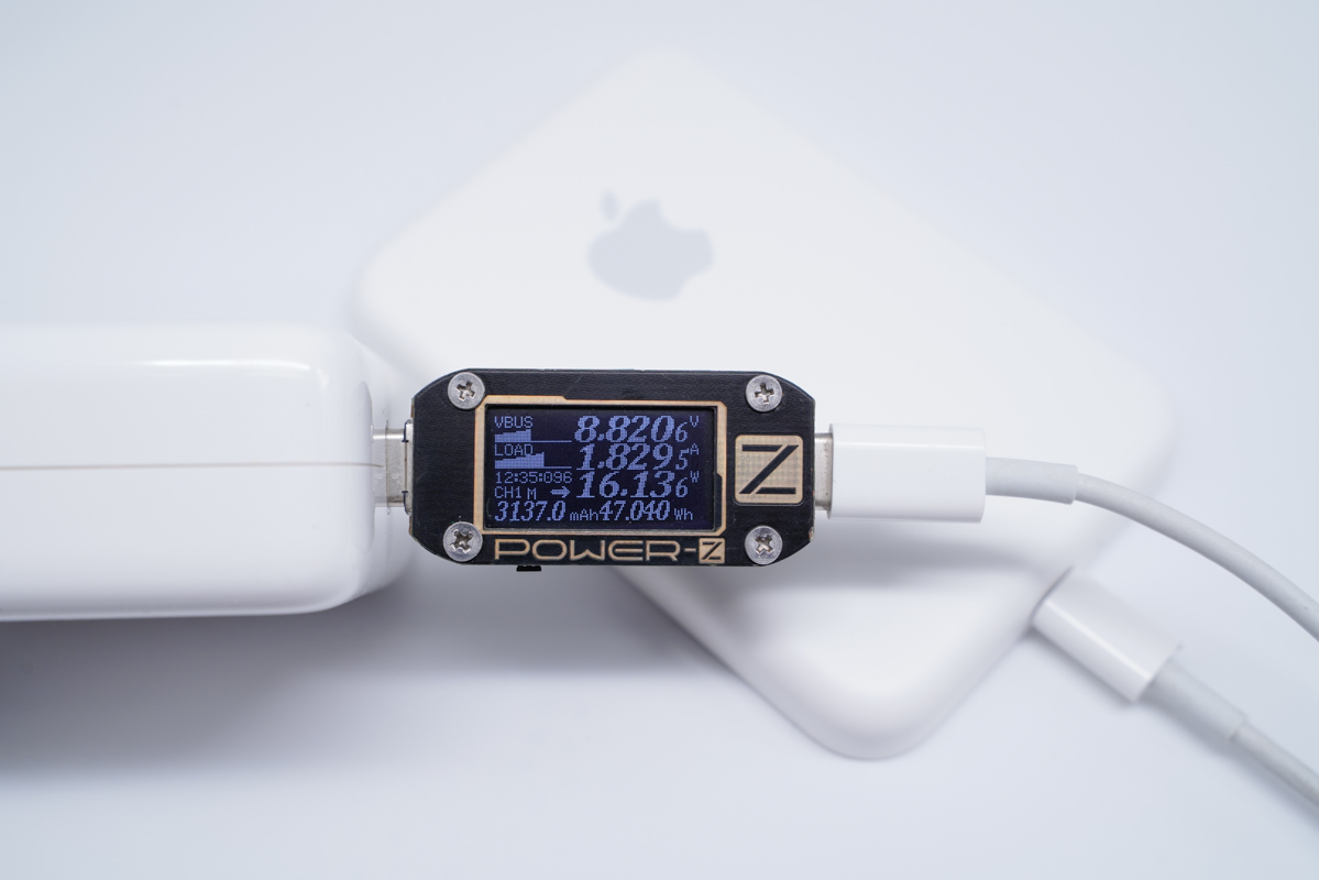 將充電器更換成蘋果61W PD充電器,功率為20.47W。