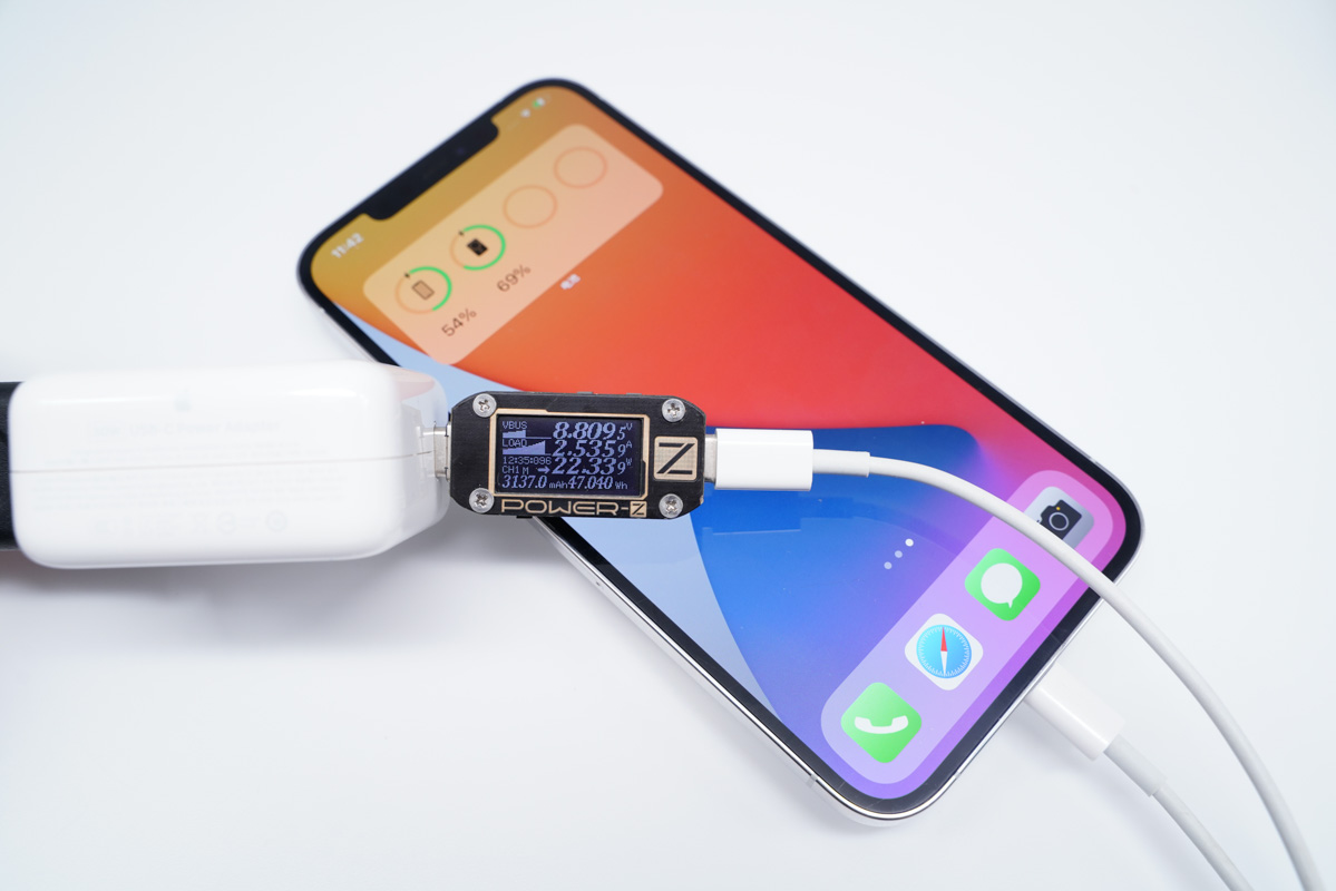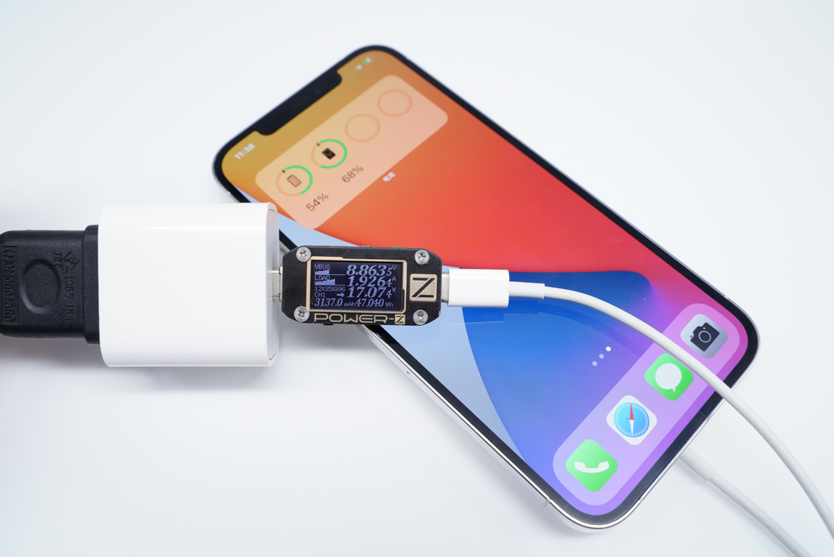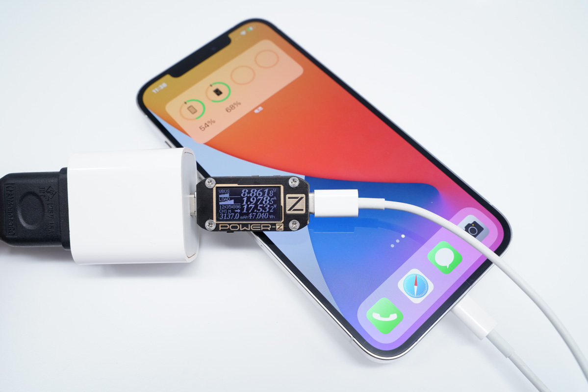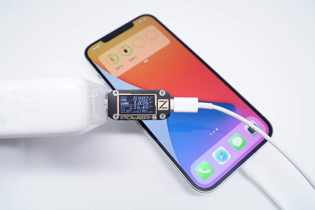 將充電器更換成蘋果20W PD充電器,功率提升至19.50W。