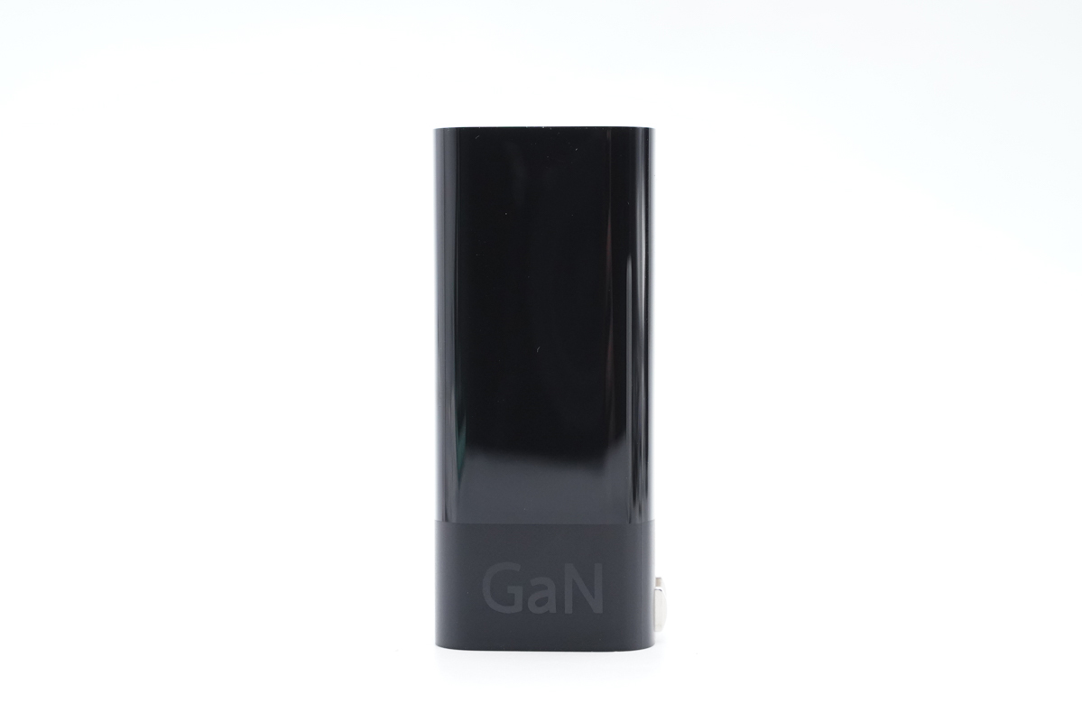 ZMI紫米65W氮化鎵充電器(1C1A)采用長條狀的外形設計,亮黑加磨砂黑的外觀配色,滿滿的ZMI紫米風格,GaN字樣也說明了充電器采用了氮化鎵技術。