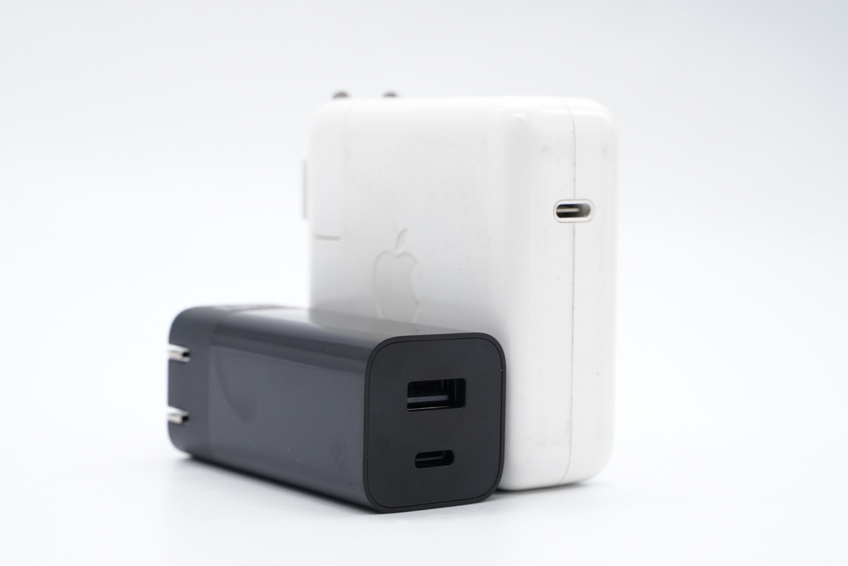 和蘋果61W PD充電器放在一起對比一下,大小差距感知很明顯。