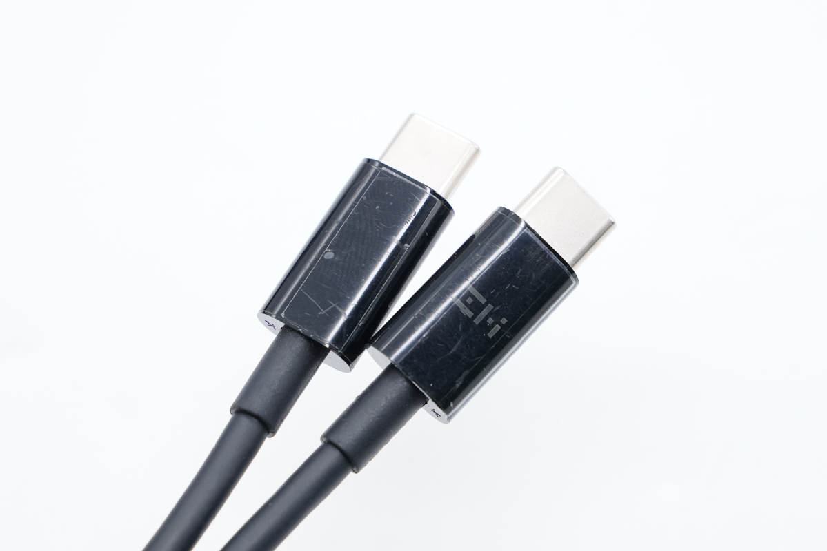線材類型為C to C,也是常見的快充線了,端子頭上面印有ZMI的Logo。