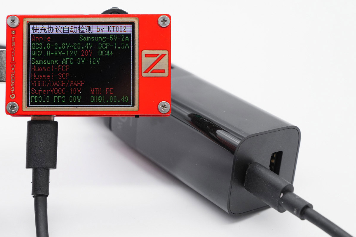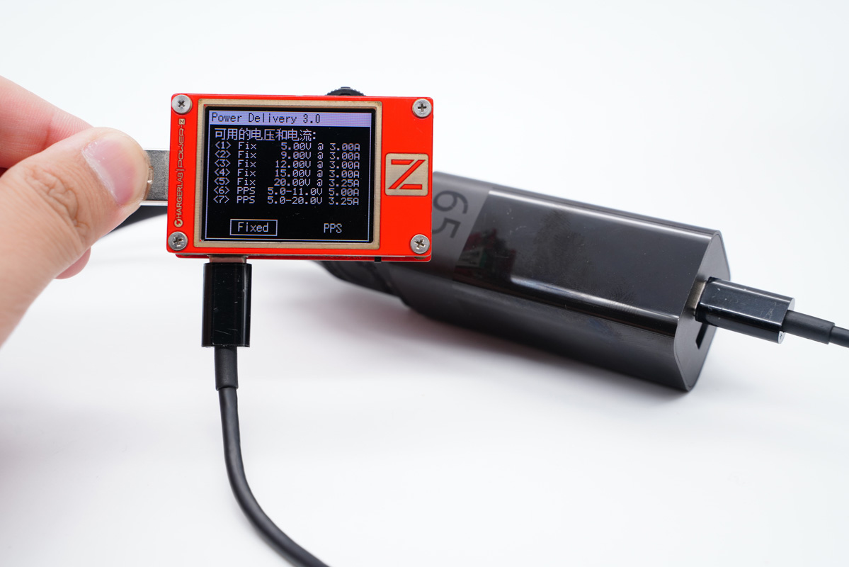 使用ChargerLAB的POWER-Z KT002讀取USB-C的快充協議,實測支持PD、PPS、Apple2.4A、QC2.0、QC3.0、QC4+、AFC快充協議。