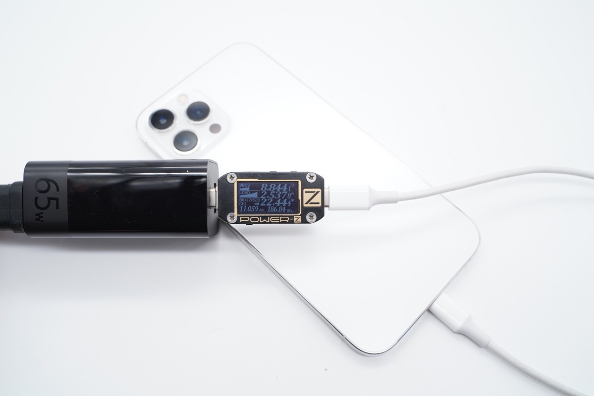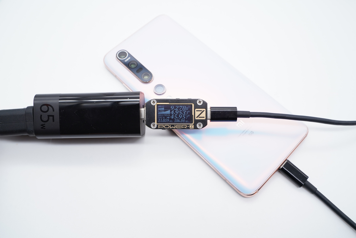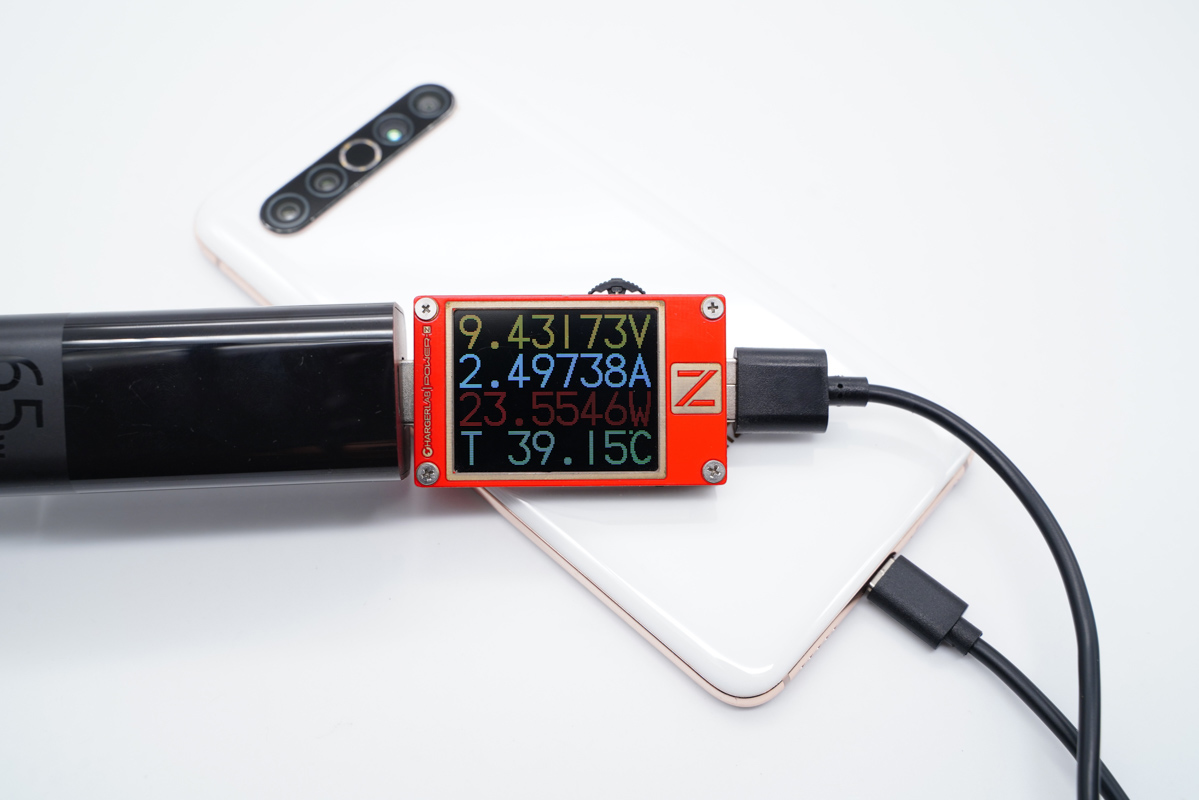 在單獨使用時,USB-C支持65W PD快充與11V5A小米系快充,對三星、黑鯊、紅魔、小米、紅米等數款機型的充電支持都非常不錯,功率甚至可以達到40W+;而USB-A則支持18W快充。