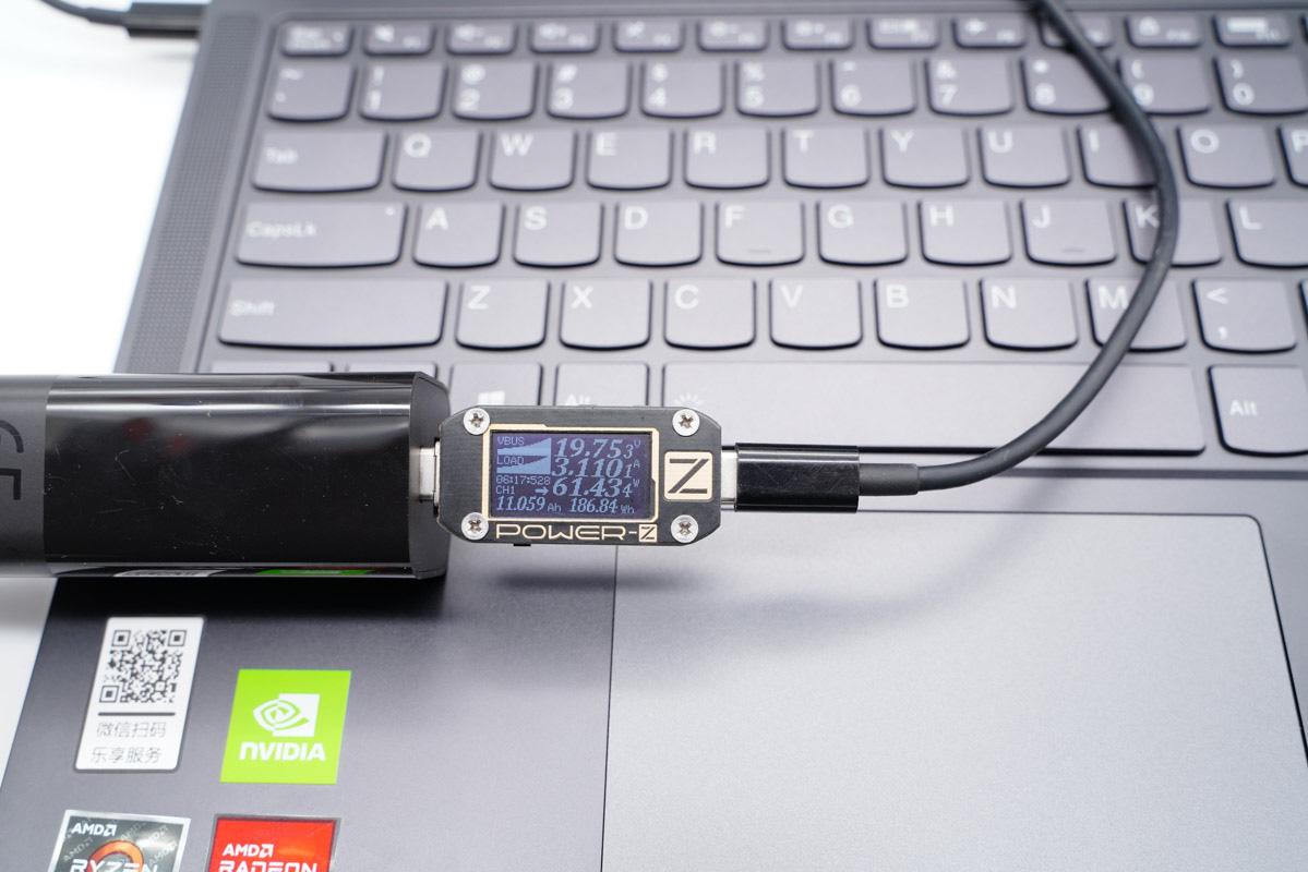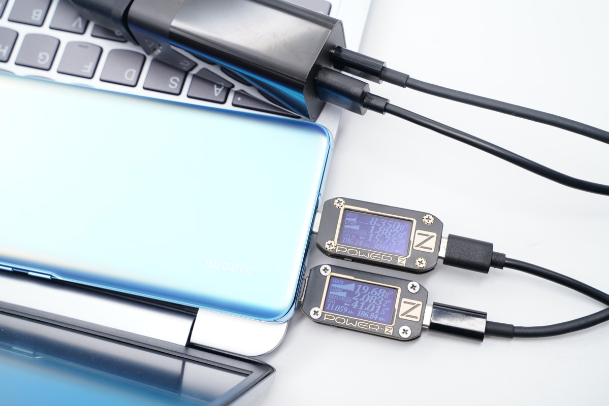 使用USB-C為筆記本電腦充電,功率為41.01W,同時使用USB-A為手機充電,功率為15.75W,充電器支持雙口同時輸出,功率分配規則為45W+18W。