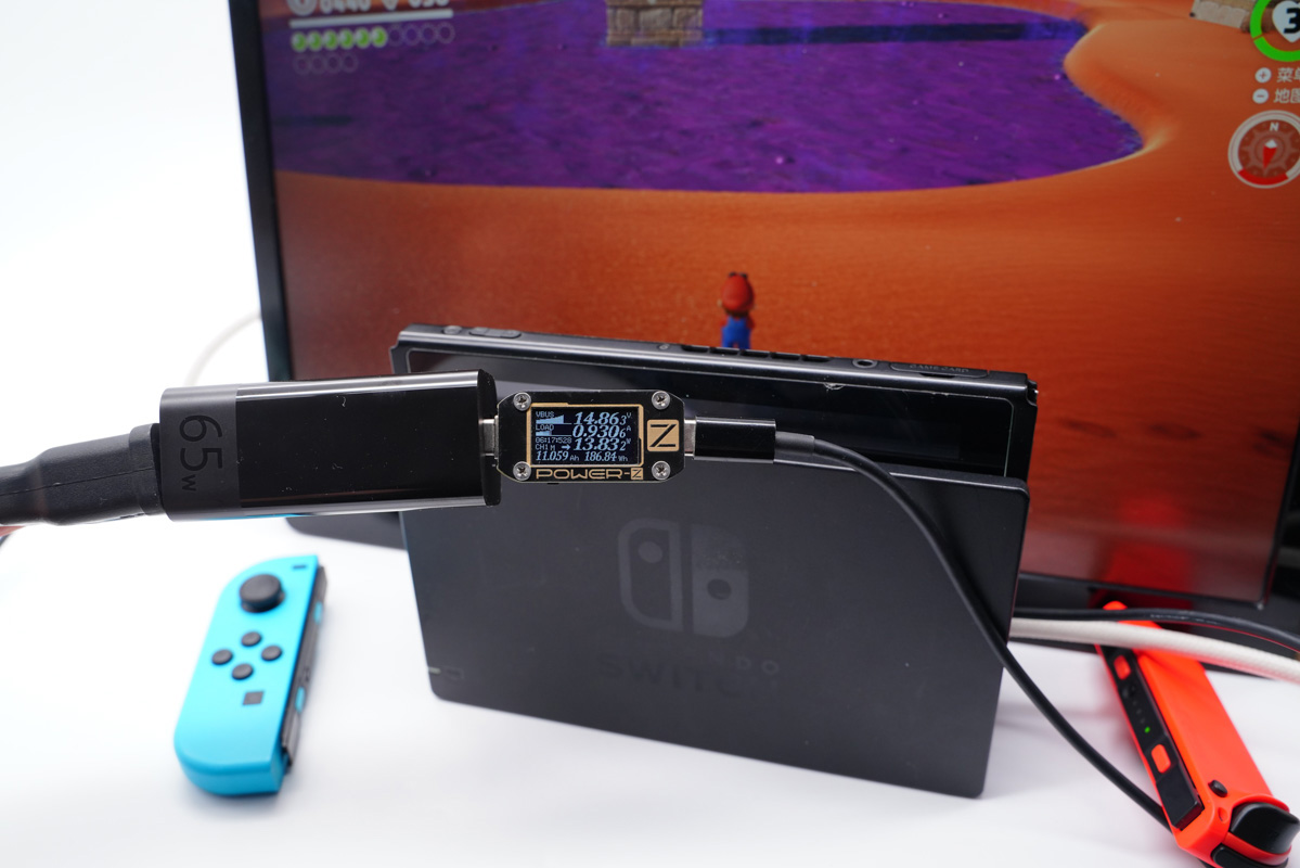 USB-C支持最高65W的PD快充,支持15V3A輸出檔位,可以激活Switch的底座TV模式。