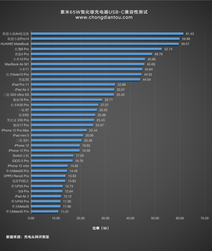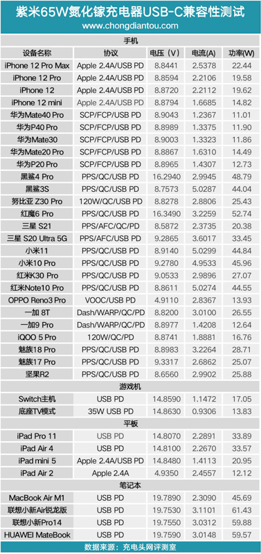 對于筆記本電腦則可以提供最高65W的快充功率。