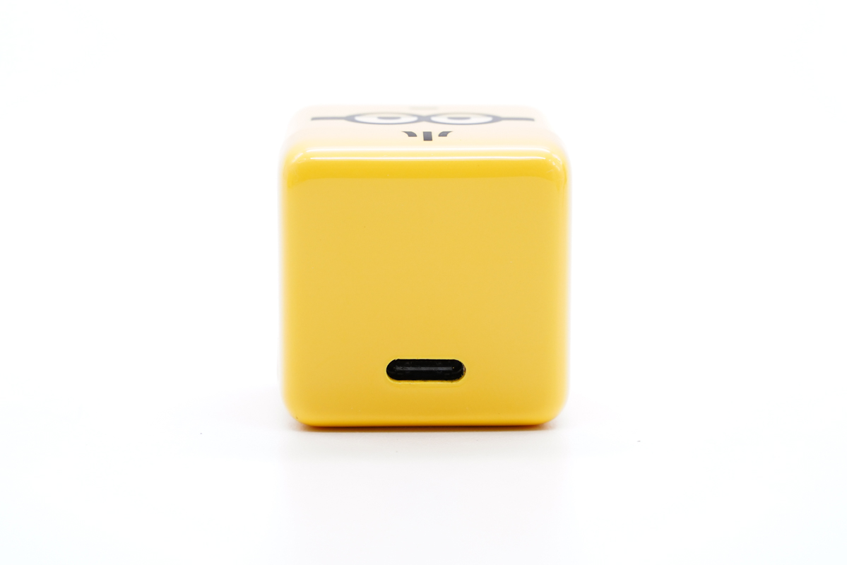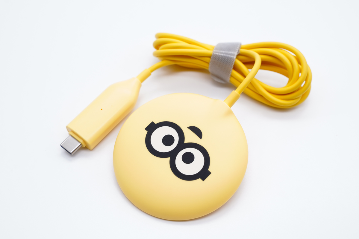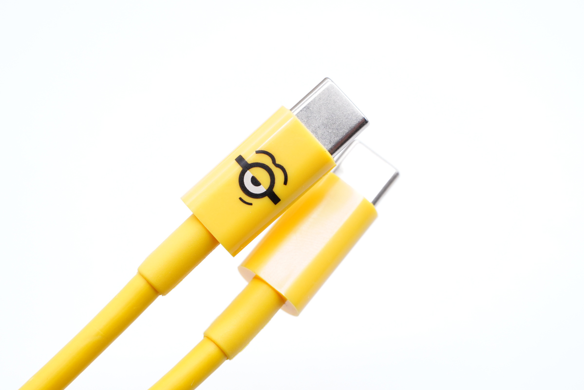 快充線材線身為黃色,也是小黃人的主打顏色,線材同樣經過了定制化,端子頭位置還可以看到大眼萌。