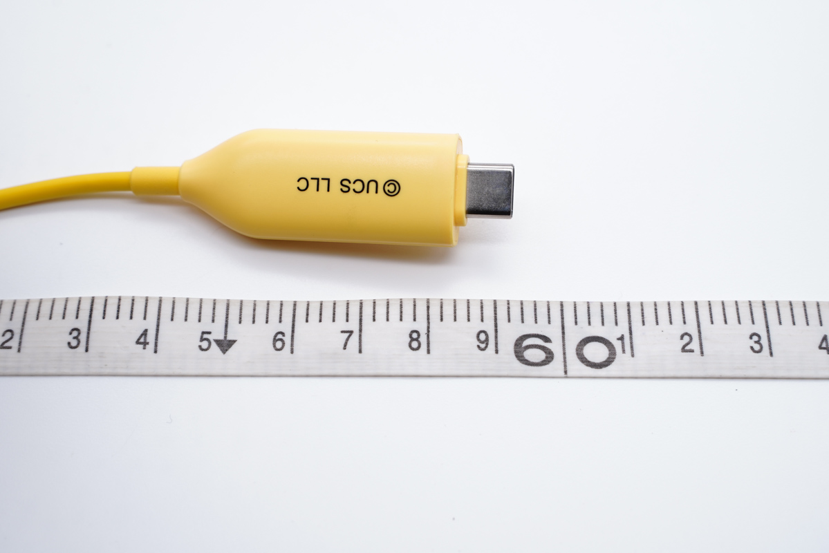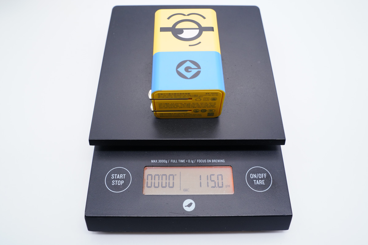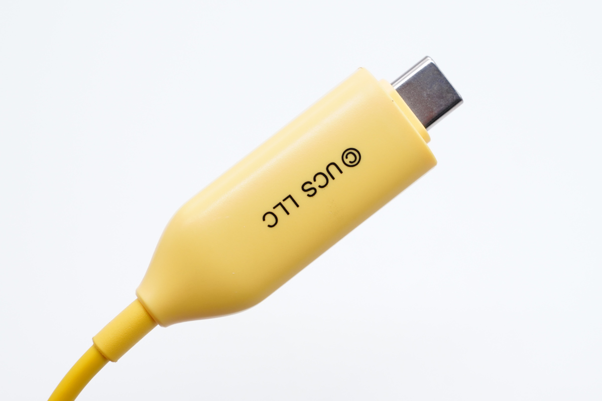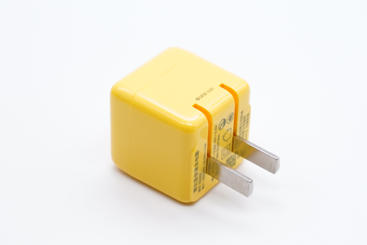 快充線材線身為黃色,也是小黃人的主打顏色,線材同樣經過了定制化,端子頭位置還可以看到大眼萌。