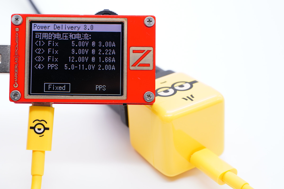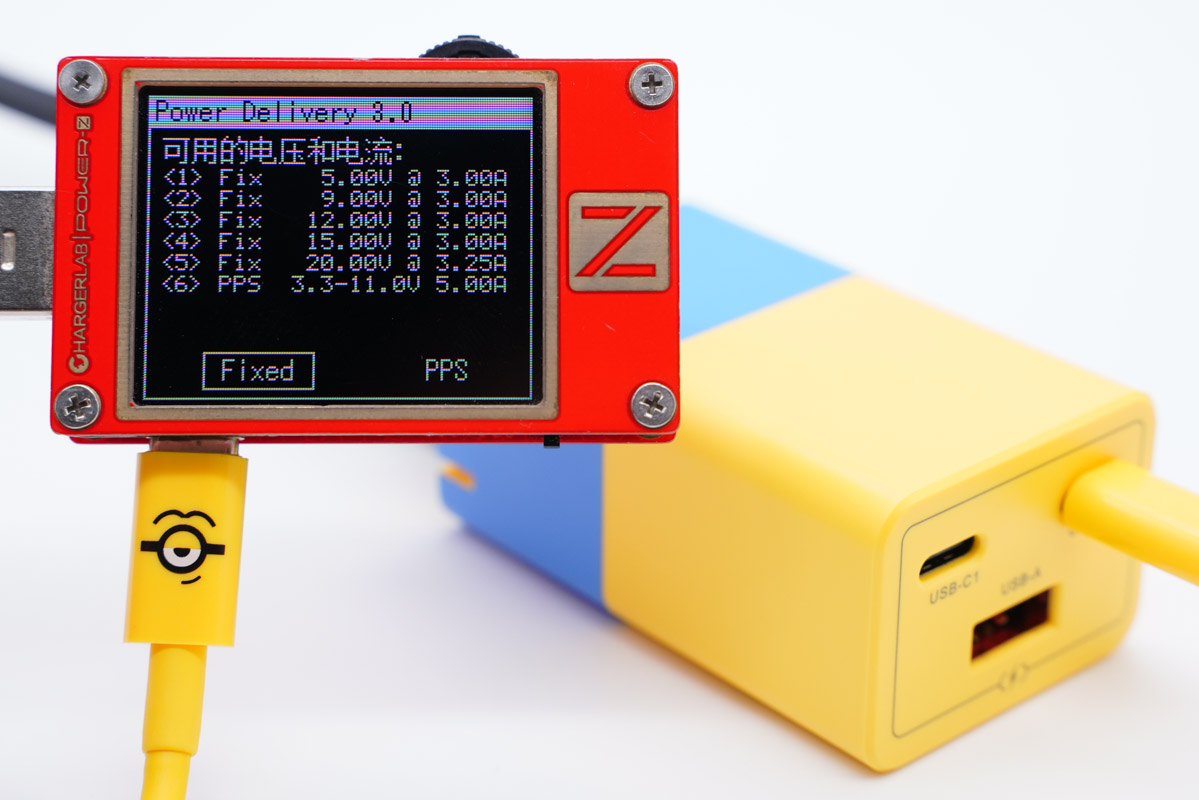 當充電器觸發PD快充時可以提供5V3A、9V3A、12V3A、15V3A、20V3.25A五個固定電壓檔位,以及3.3-11V5A一組PPS檔位。