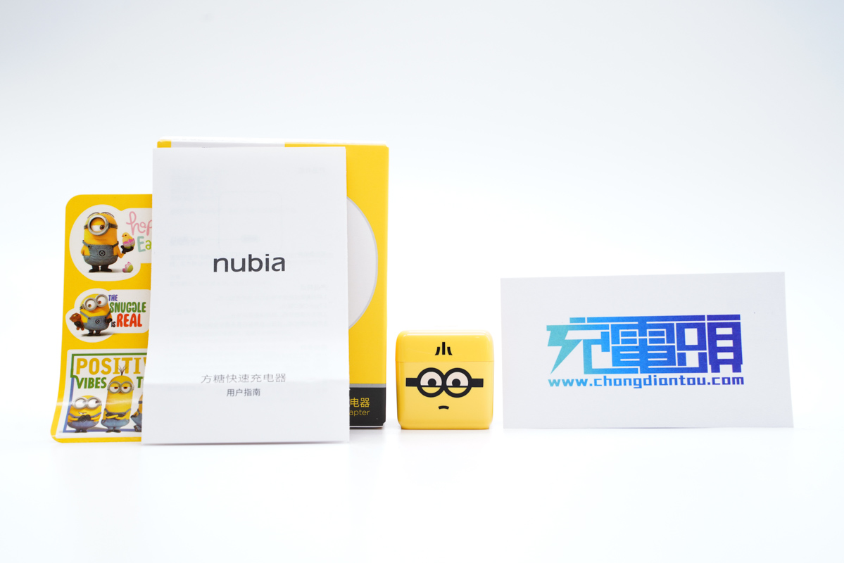包裝盒內部除了充電器外還有說明書和小黃人動漫卡片。