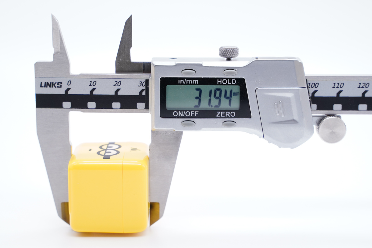使用卡尺實測充電器的寬度約為31.84mm。
