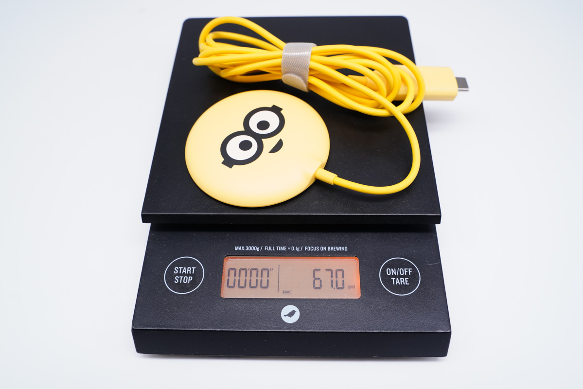 無線充電板加連接線的重量僅為67g。