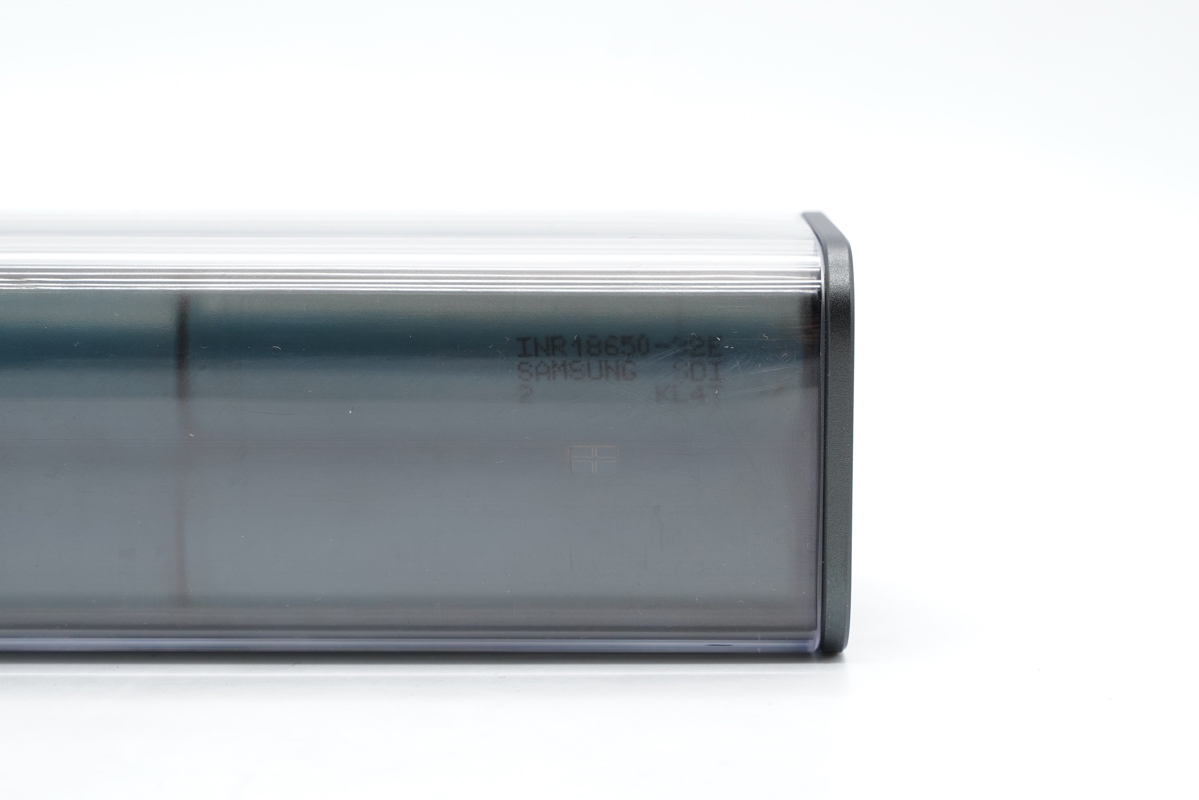 從透明的殼體上可以直接看出內部使用的電芯為進口A規動力電芯,具有一致性好,安全性高等特點。
