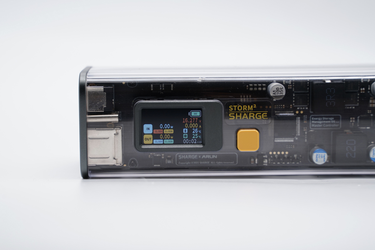 除了出色的性能以及極具個性的外觀外,SHARGE閃極超級移動電源還配備了分辨率為240x135的 IPS 全彩屏幕,內建儲能管理系統,輸入、輸出、工作時的溫度情況,在屏幕上清晰可見。