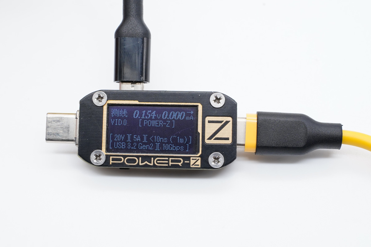 使用POWER-Z KM001C讀取線材的信息,可以得知線材內置E-Marker芯片,支持100W充電功率。