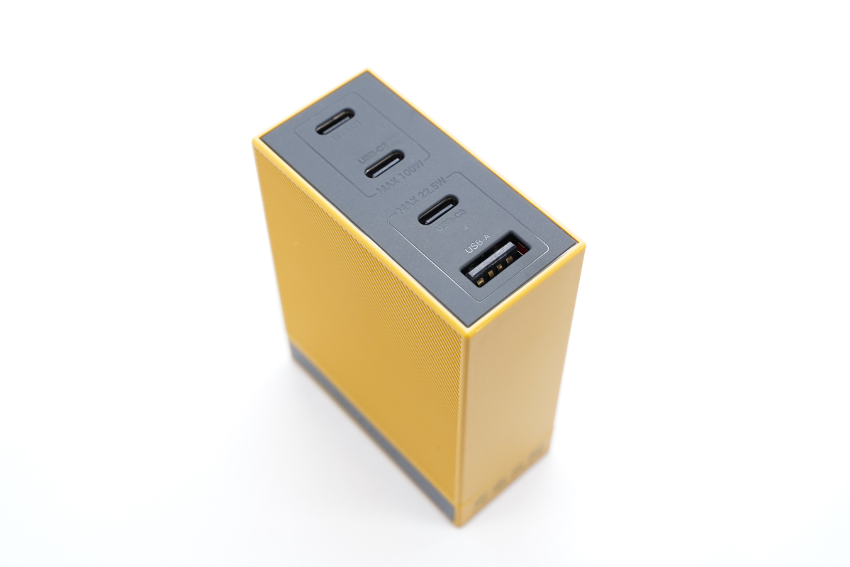 附帶的“另一款”新品是SHARGE閃極最新推出的氮化鎵充電器100W Pro版。它采用和此前推出的SHARGE閃極氮化鎵充電器系列一樣的斜條紋格調,不同的是殼體采用了全新的黃色外觀,和SHARGE閃極超級移動電源相輔相成,具有賽博朋克的氣息。