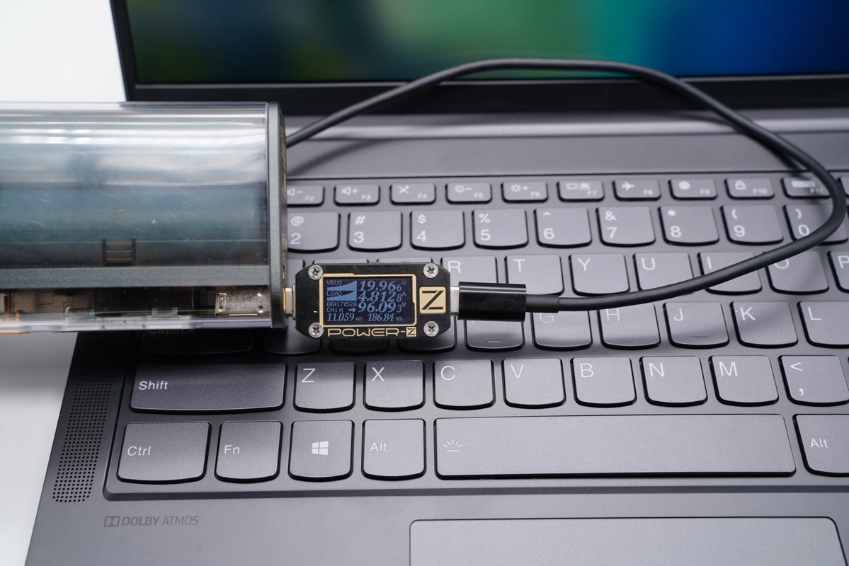 即使對于支持百瓦快充的筆記本電腦也可以輕松滿足,實測為聯想小新Air 14充電功率可以達到19.96V 4.81A 96.09W。