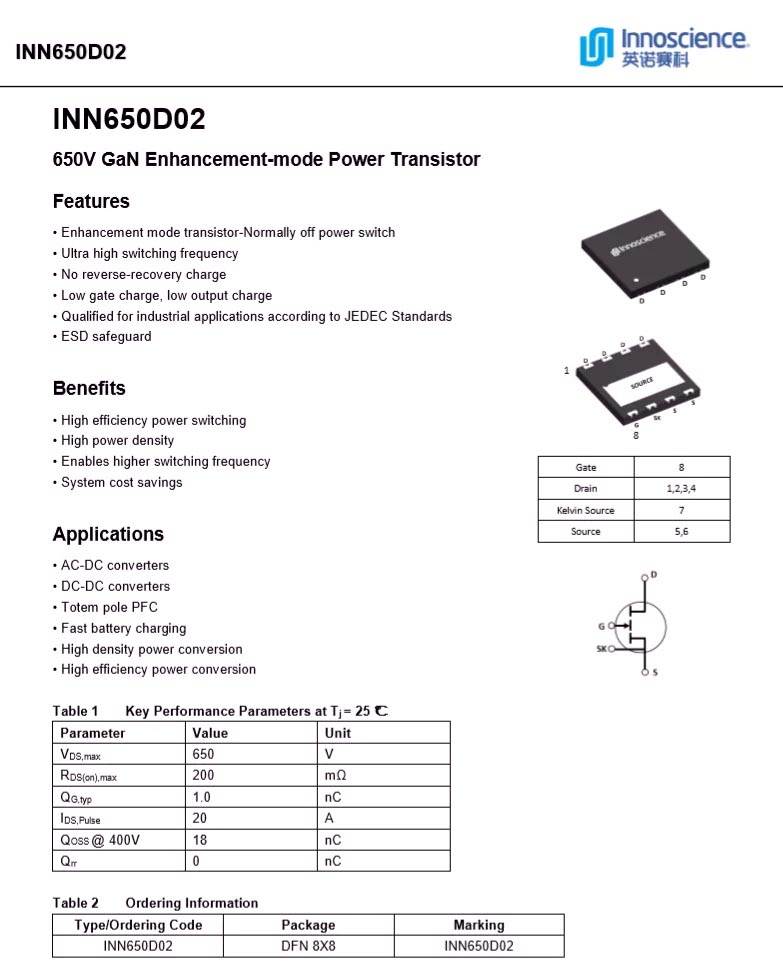 英諾賽科 INN650D02 詳細(xì)資料。