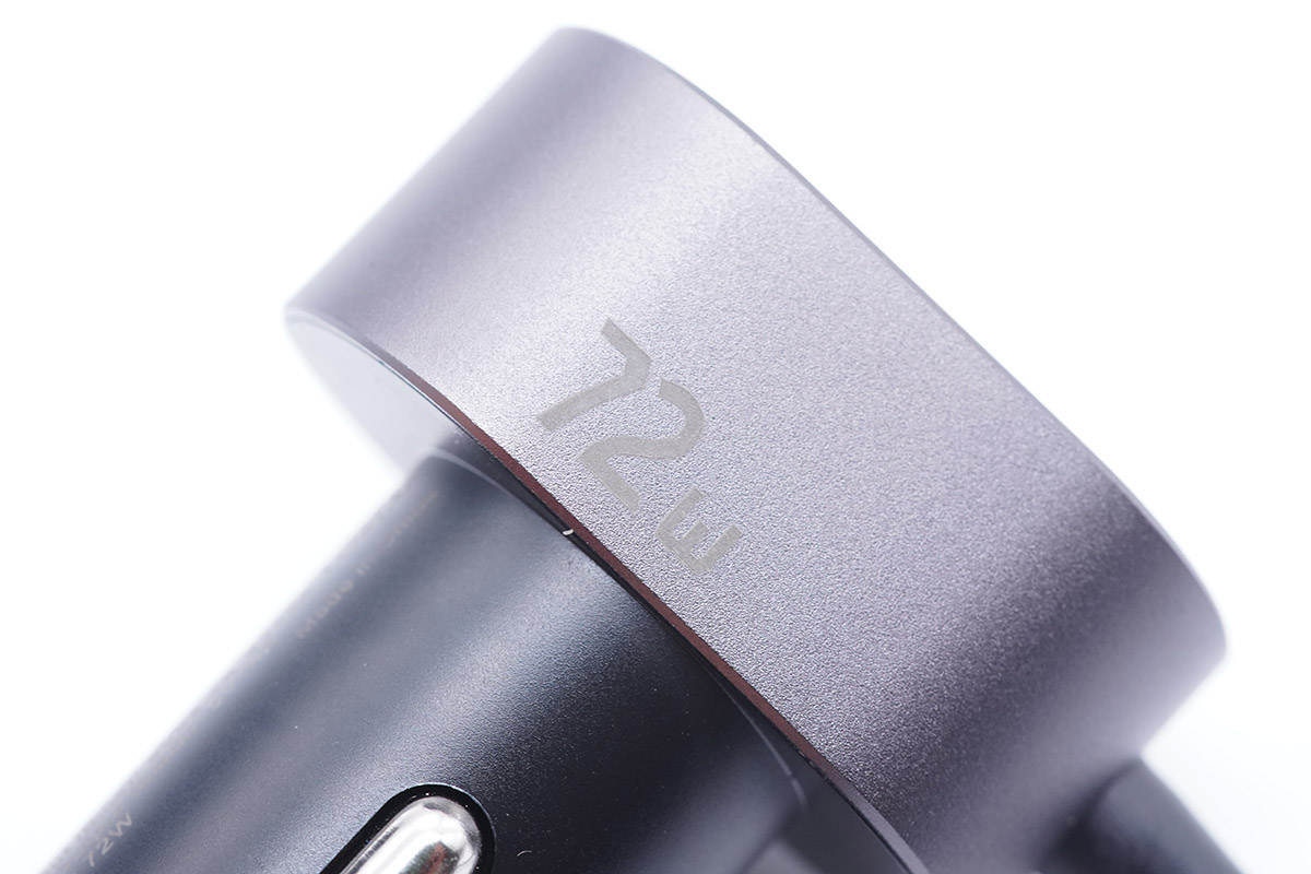 金屬殼上鐳雕72W字樣,表明產(chǎn)品輸出功率。