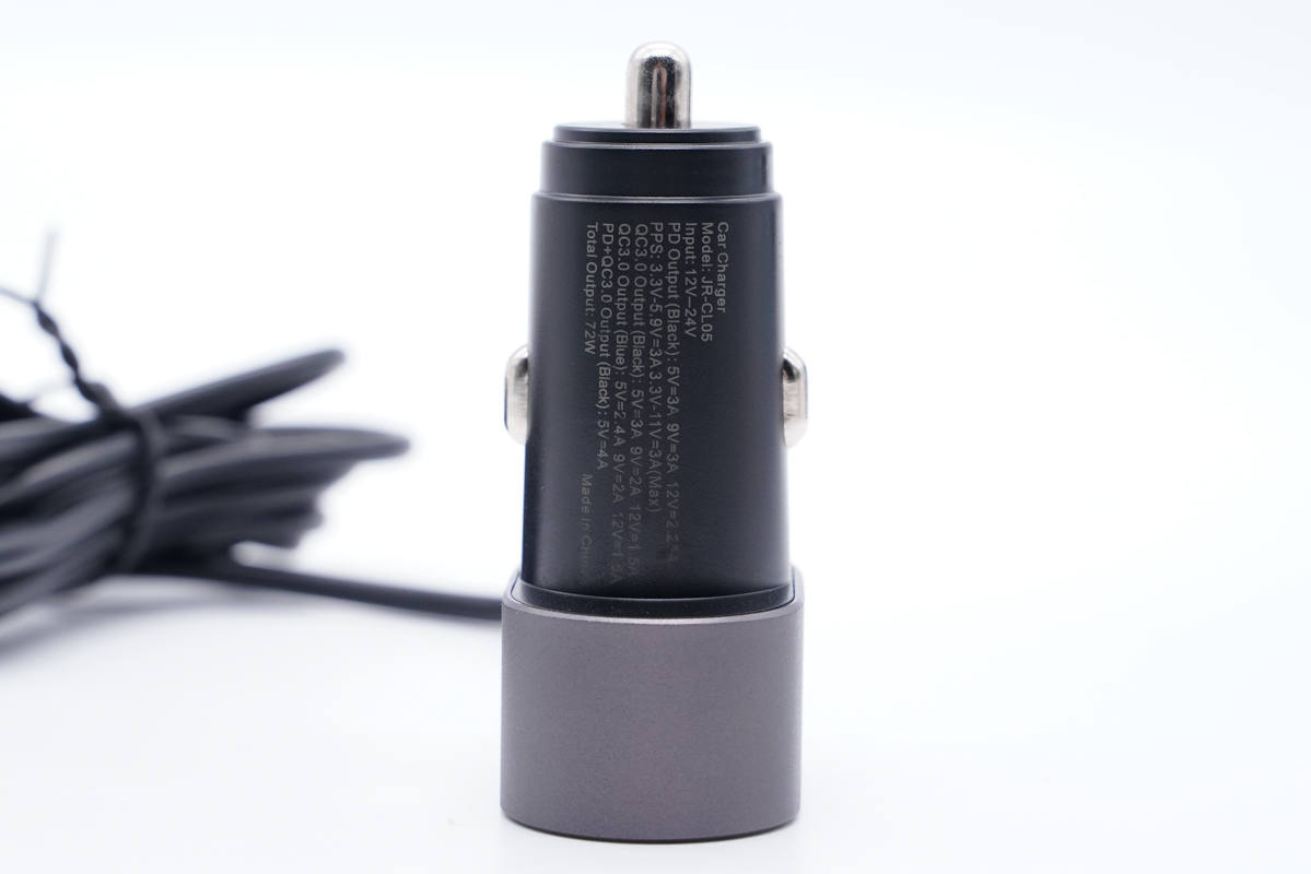 機樂堂這款車充由車充本體以及擴展的背夾組成,連接線纜長約1.5米,因此滿足車內(nèi)前后排多人同時充電不是問題。車充本體配備2A1C接口,支持18W和27W快充,可以滿足司機和副駕駛?cè)藛T的手機以及行車記錄儀等設備充電。