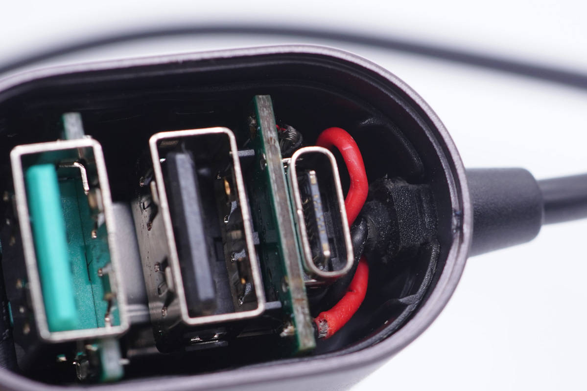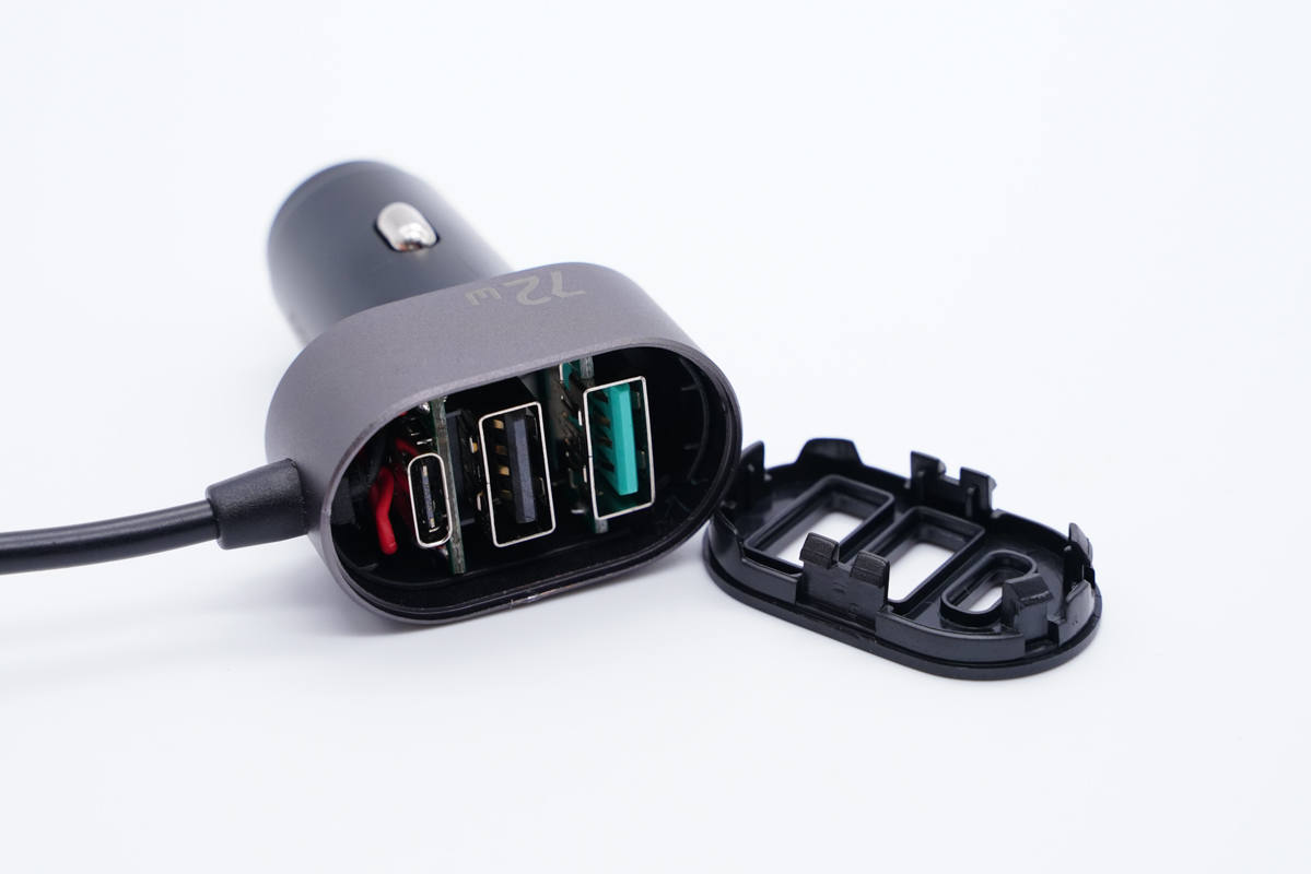 近期JOYROOM機樂堂推出了一款新款車充JR-CL05,這款產(chǎn)品的最大特點便是接口多,配備3A2C五個接口,最多可以支持5臺設備同時充電。此外車充的每一個接口都支持快充,最大輸出功率27W,可以路上給平板等設備充電。多口充電中總輸出功率72W,解決多人出行充電問題。下面充電頭網(wǎng)就對這款車充進行詳細拆解,看看產(chǎn)品如何設計。